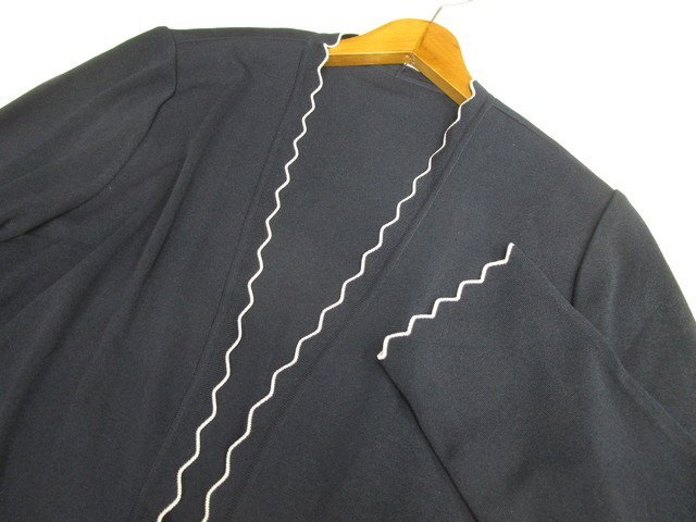 薄手のニットで、着心地の良いトッパーカーディガン。ギザギザしたベージュカラーのパイピングがおしゃれ。落ち着いた雰囲気で上品です。春、秋に活躍してくれる1枚です。