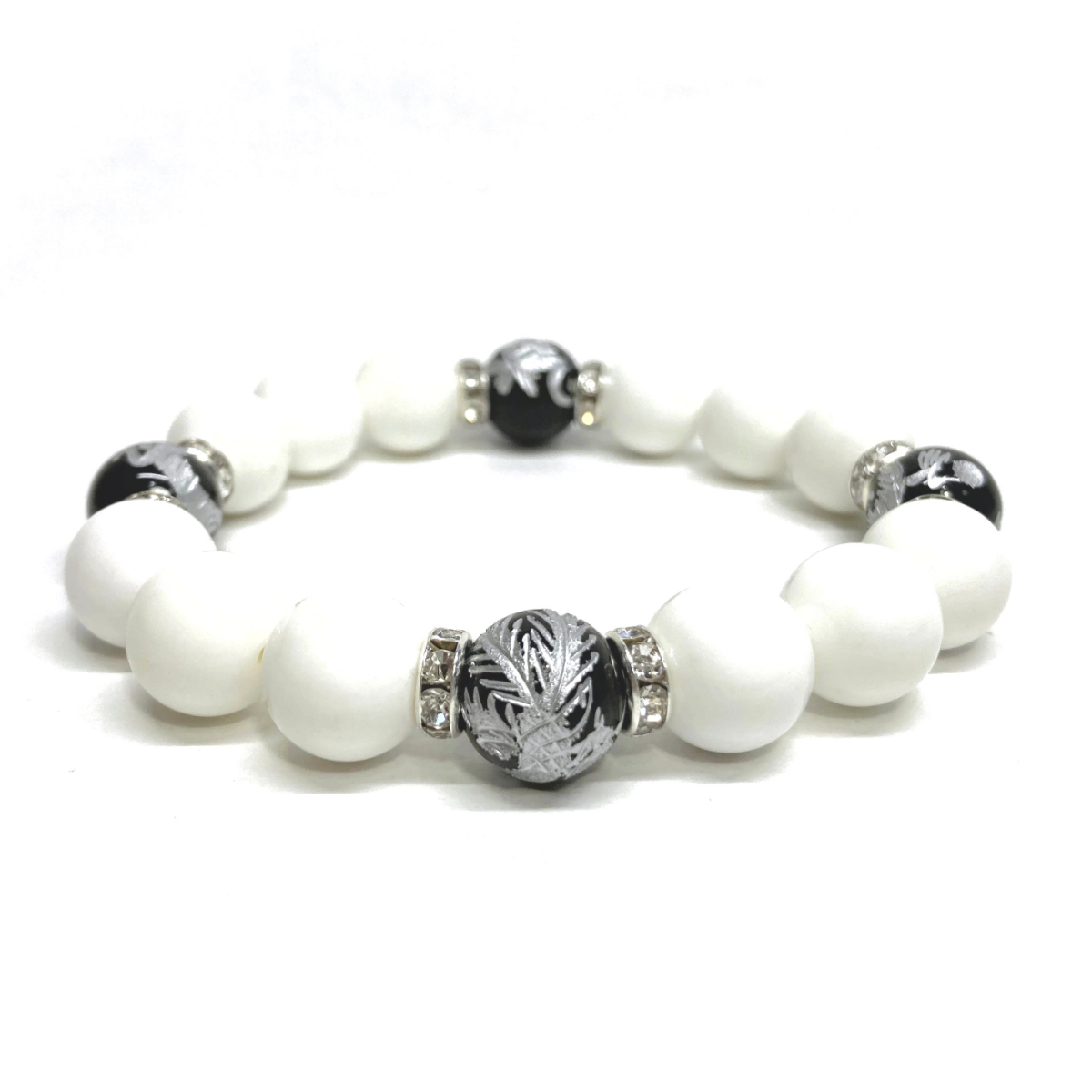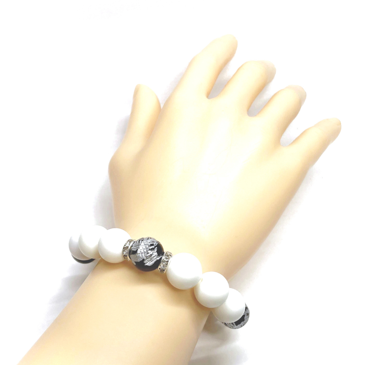 こちらは、四神獣銀彫オニキとホワイトオニキスを組み合わせたパワーストーンブレスレットです。四神獣は、中国の伝説で4つの方向(東西南北)を守護する神聖な神。四神獣、厄災から身を守り、多くの運気を呼び込むと言われております。石大きさは程よくインパクトのある12mm玉で内周 約17cmです。 数に限りがございますので気になる方はお早めにどうぞ。