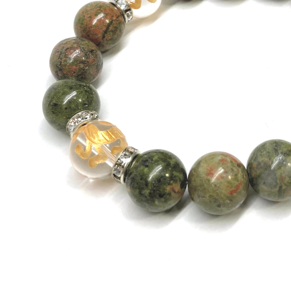 四神獣金彫水晶×ユナカイト 12mm パワーストーン ブレスレット天然石 青龍 白虎 玄武 朱雀 運気上昇 金運 健康運 お守り 四神相応 S