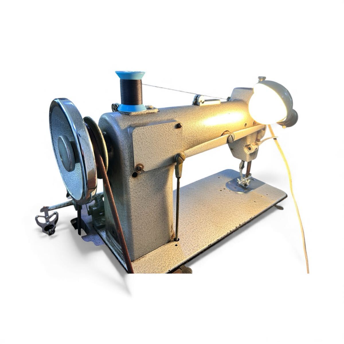 重厚感ある職業用モデル。現役で使用可能な足踏みミシン。
