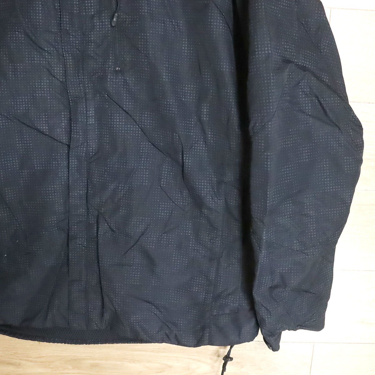 中古品です。使用感があります。右フロントポケット入り口に破れ、両袖先のパーツと裾のドローコードストッパーに破損があります。