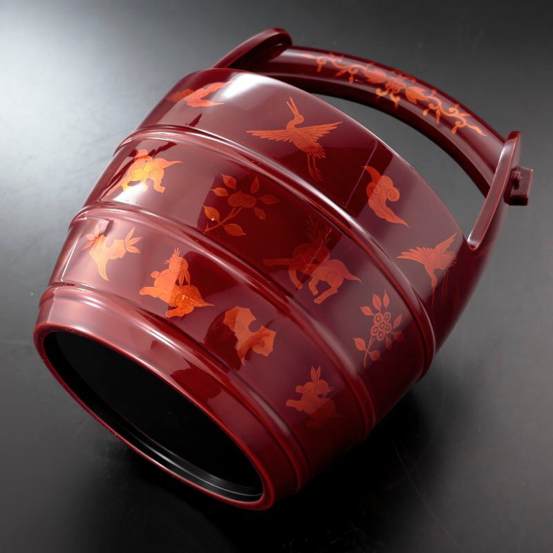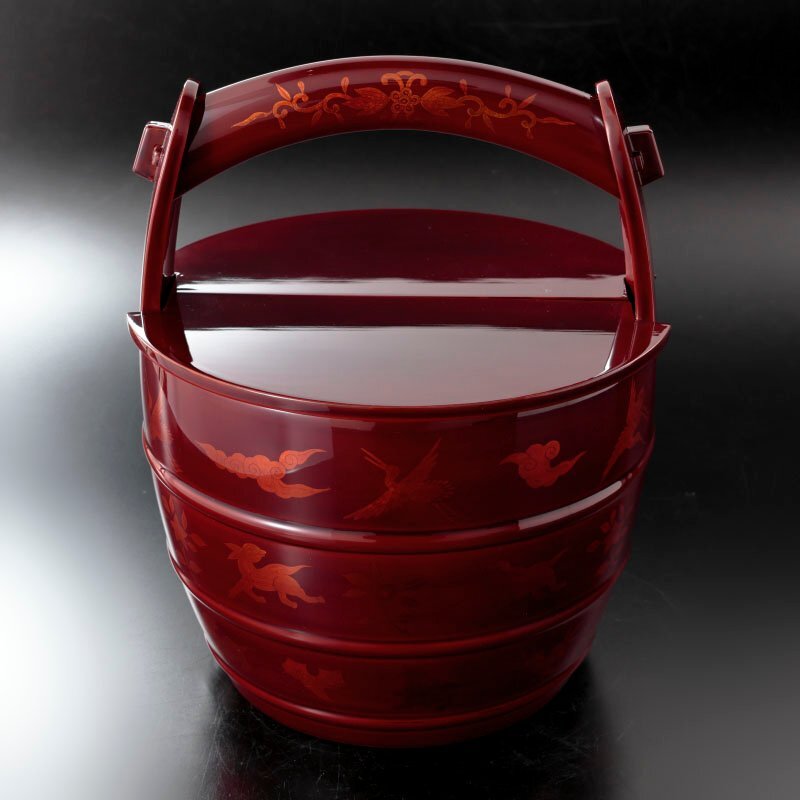 | 【古美味】塗師 辻石斎造『而妙斎書付』白タン塗 雲鶴手桶水指 茶道具 保証品 |