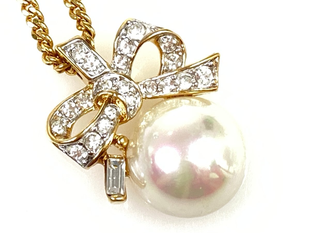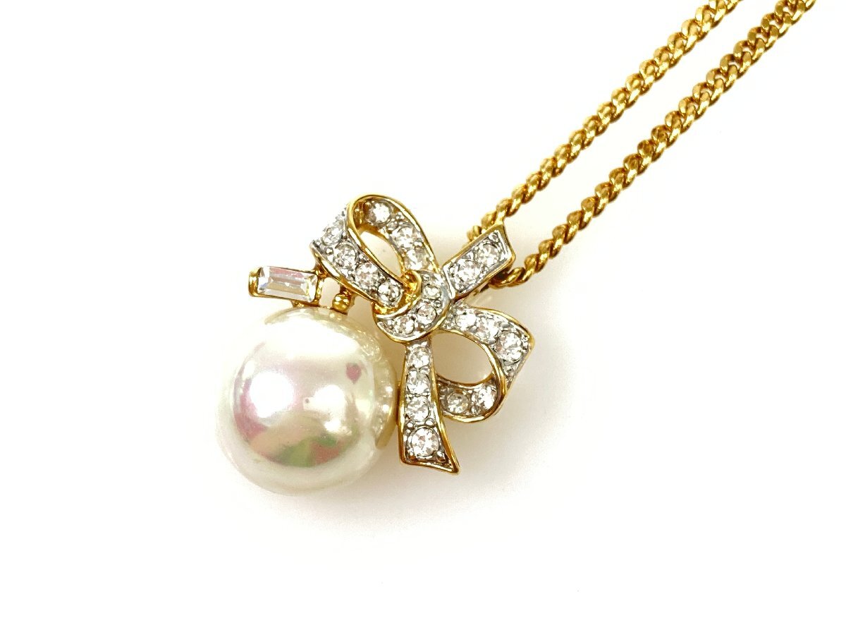 | 商品名 | リボン ラインストーン フェイクパール ネックレス ゴールドカラー |