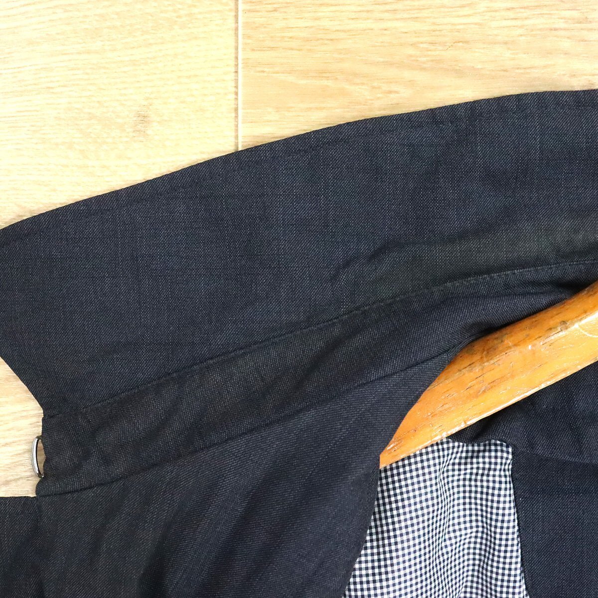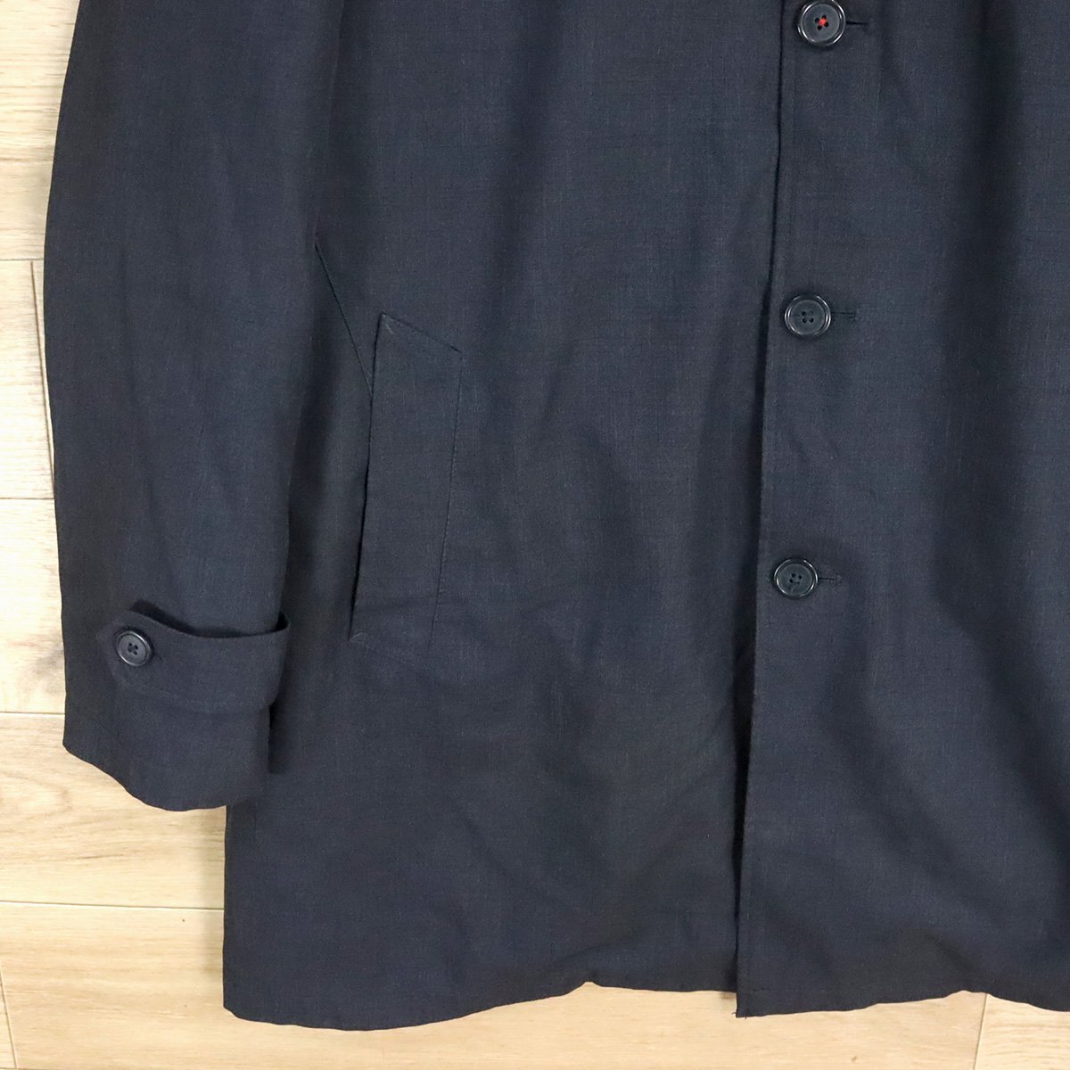 中古品です。使用感があります。襟や胸元に薄胸元、ライナー裾にヨレ、フロント第3ボタンに付け直しがされています。