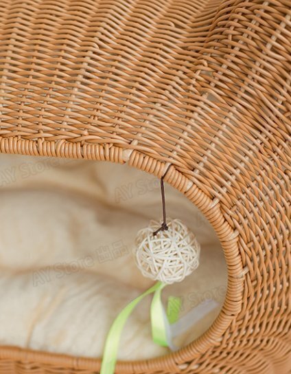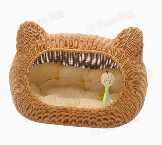 水洗い可能な籐編みの猫小屋四季兼用の猫小屋犬小屋ペット用品の手編み半閉鎖の猫小屋です