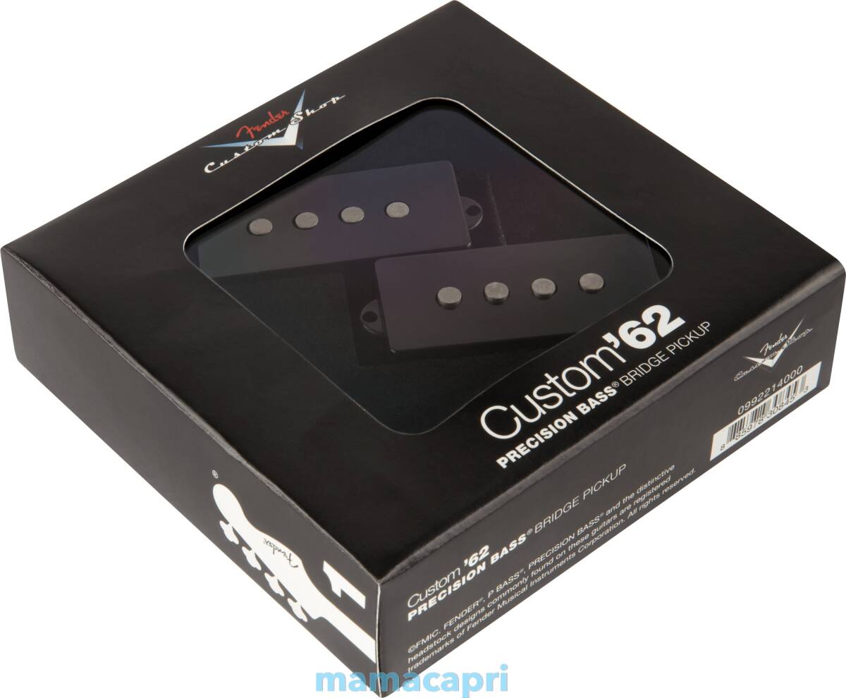 Details The Fender Custom Shop has artfully reproduced the classic 1962 Precision Bass split-coil pickup to deliver the full booming lows, punchy midrange and clear high end of the bass that started it all. Features Enamel-coated magnet wire for warm vintage-style tones Flush-mount pole pieces for even string response Alnico 5 magnets for more focus and enhanced dynamics Period-correct cloth output wire and fiber bobbin Installation hardware included Electronics Bobbin Material Fiber DC Resistance 10.5K Inductance 5.9 Henries Lead Wire Cloth-covered Magnet Type Alnico 5 Magnet Wire Enamel-coated Output Moderate Pickup Configuration Split Single-Coil Pole Pieces Flush-mount |