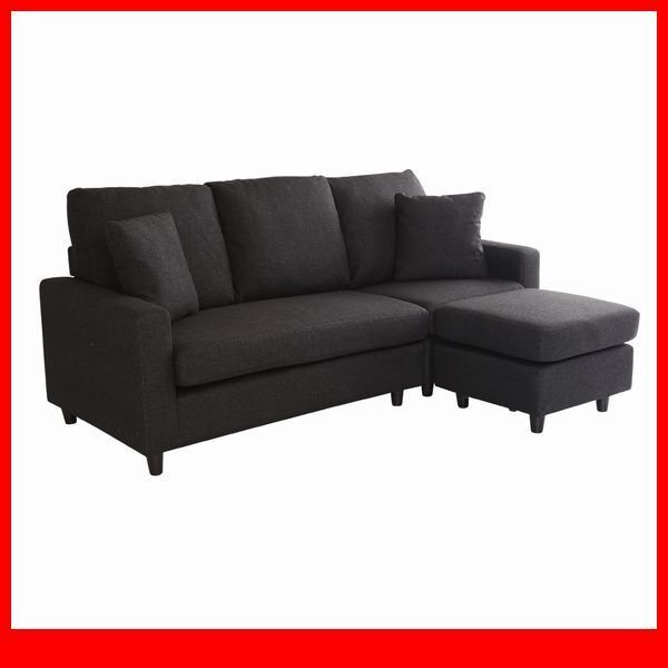 ソファ★3人掛けカウチソファ/オットマン カウチ 脚を外してロースタイル 自由自在/布製 ポケットコイル クッション付き/ブラック/a1