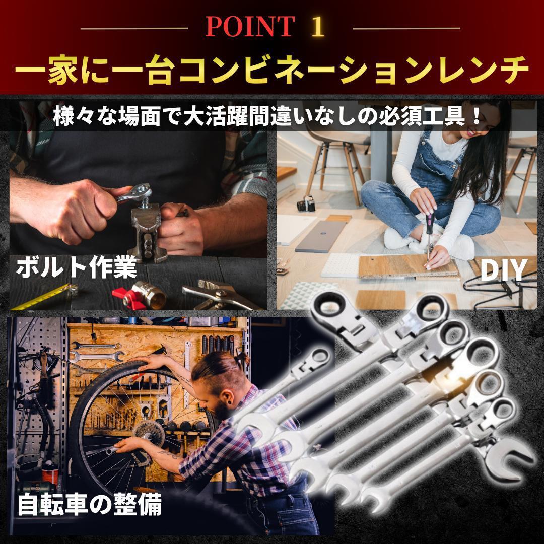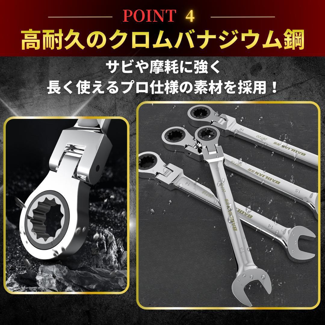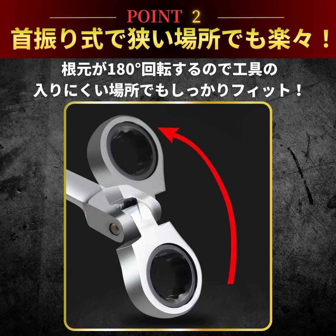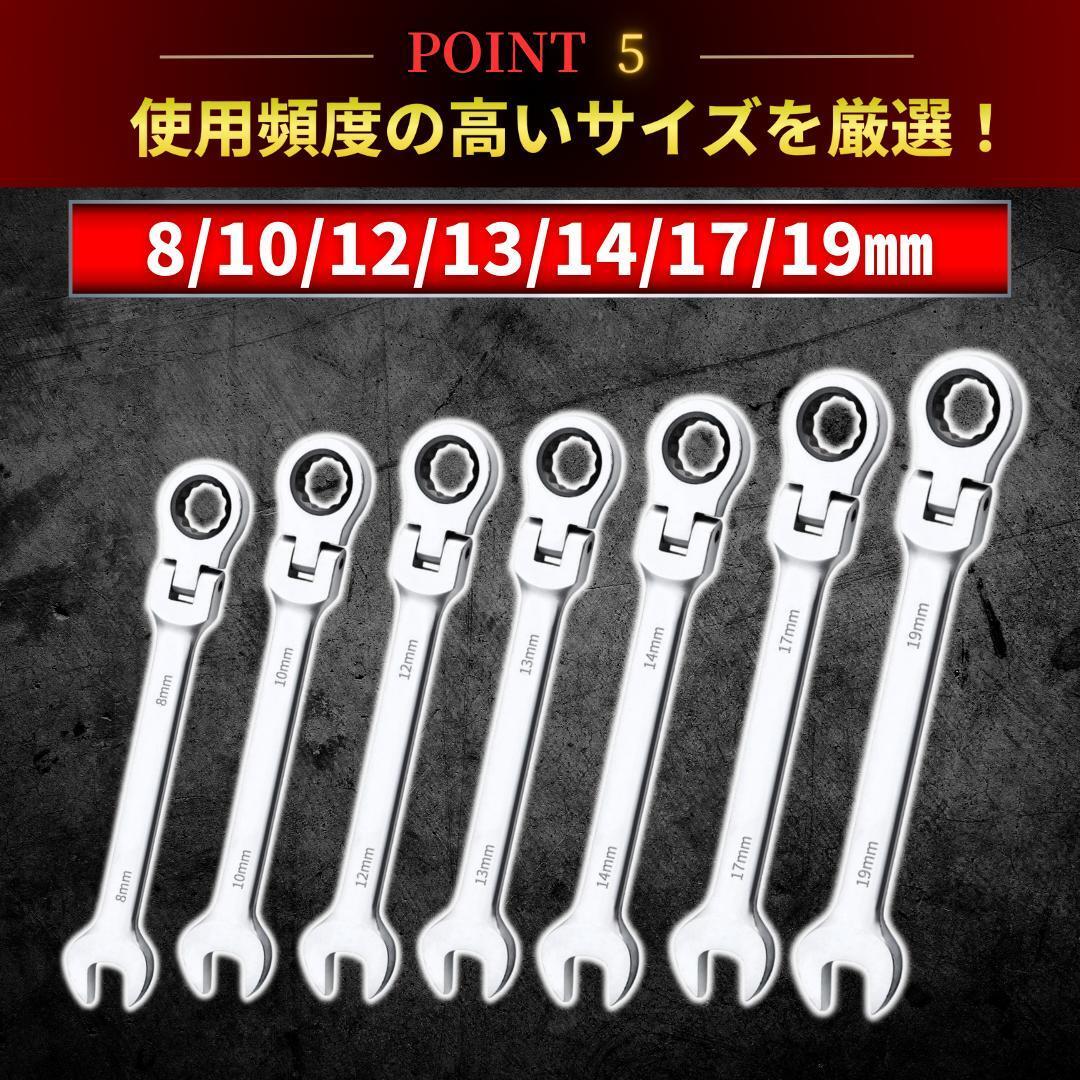 | ・ギア数:72山 ・首振り角度:0〜180度 ・内容:7本セット ・サイズ:8mm / 10mm / 12mm / 13mm / 14mm / 17mm / 19mm ・材質:クロムバナジウム鋼(高耐久) ・仕上げ:鏡面メッキ仕上げ | |||