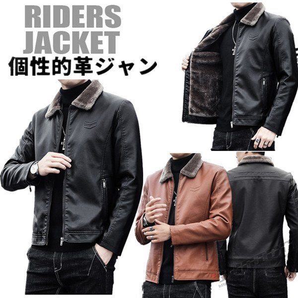 革ジャン レザージャケット メンズ 裏起毛 フライトジャケット バイク PUライダースジャケット カジュアル レザーコート 大き