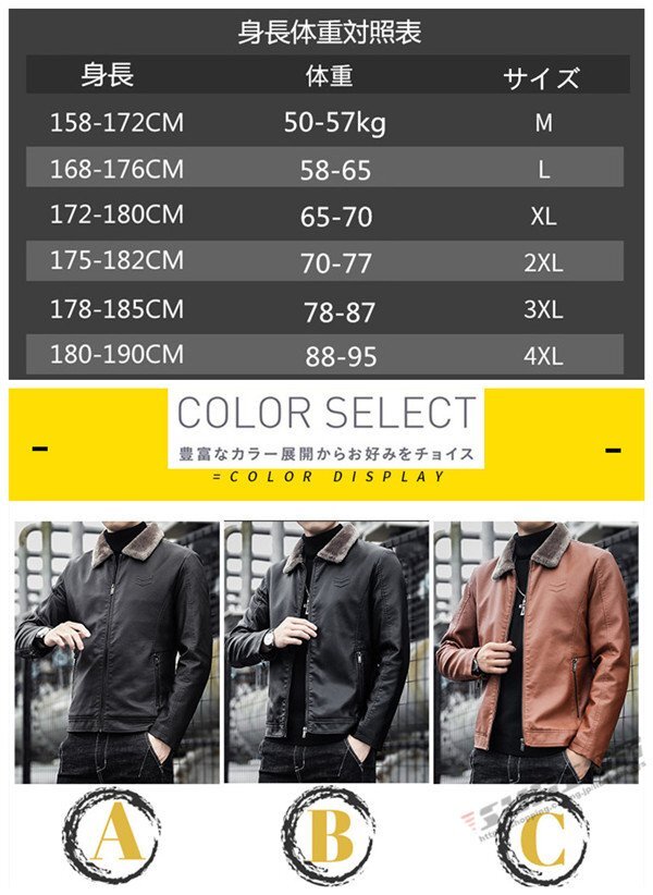 【商品特徴】◎ライダース気分もロッカー気分も味わえるジッパー付きのライダースジャケット。◎冬の相棒にオススメしたい、この冬大本命のブルゾン!◎身体のラインに沿った立体的なシルエット!◎上質なPUレザーを使用しヘビーに使えるよう考慮。◎バツグンの保温力と優しい肌触りのボア素材、男らしさも防寒性も高めてくれるアイテム!◎新作の人気商品を激安価格で、父の日やバレンタイン、クリスマスなどのプレゼントにも最適!【素材】◆[表地]:PU革◆[裏地]:ポリエステル