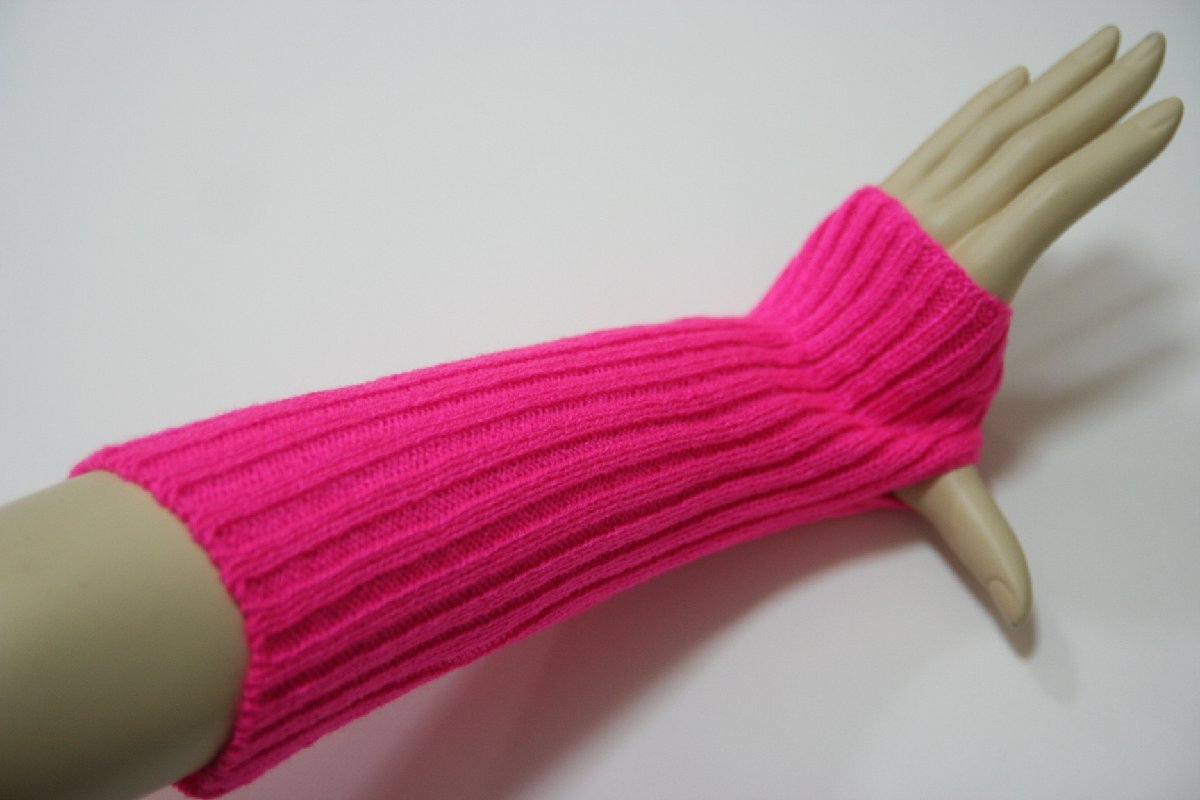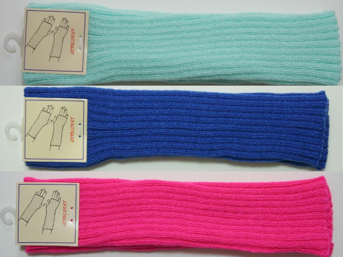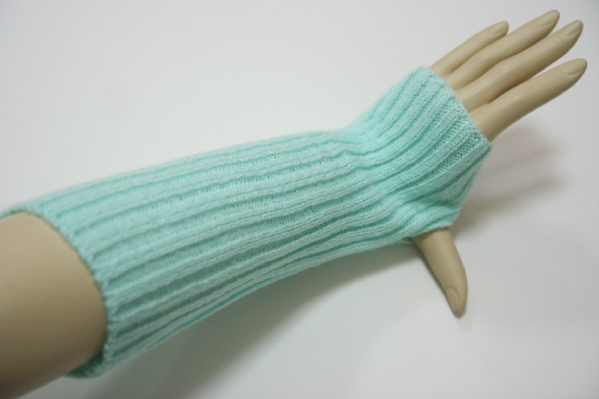 500円~♪送料無料◆3色組◆アームウォーマー◆親指穴付き◆リブ編み◆あったかアームカバー(ミントグリーン&ブルー&ショッキングピンク)
