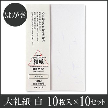 | ネコポス送料無料 大直 和紙 はがき 大礼紙 白 葉書 10枚入×10セット