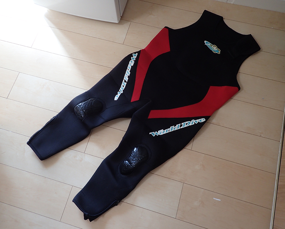 ワールドダイブ製5mm厚、ロングジョンです。外側・内側ともジャージです。 知人からの委託品なので詳細不明なのですが、ファスナーや膝パッド、肩のベルクロなどを見ると新品未使用品(自宅保管品)のようです。 ジャケットはありません。 厚み1mm程度の薄いネオプレーン製インナー(短パン、長袖インナー)をセットで。ウエットを脱いで、すぐ水着姿になりたくない人に、お勧めです。 こちらは使用品です。出品前に自宅で洗濯しておきました。 サイズを平置きで、 ロングジョン/身幅46cm、肩から股まで67cm、股下60cm。 長袖インナー/腕の長さ50cm、身丈59cm、身幅45cm。 短パン/また上35cm、また下39cm、胴回り40cm。 恐れ入りますがノークレーム・ノーリターンでお願いします。 |
