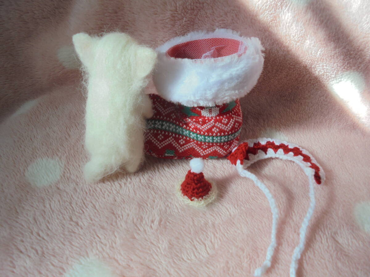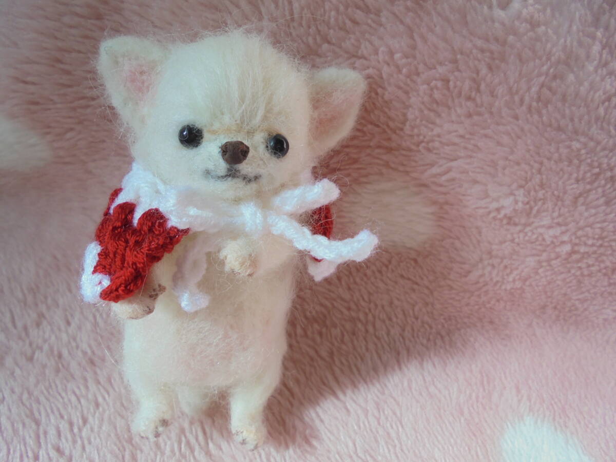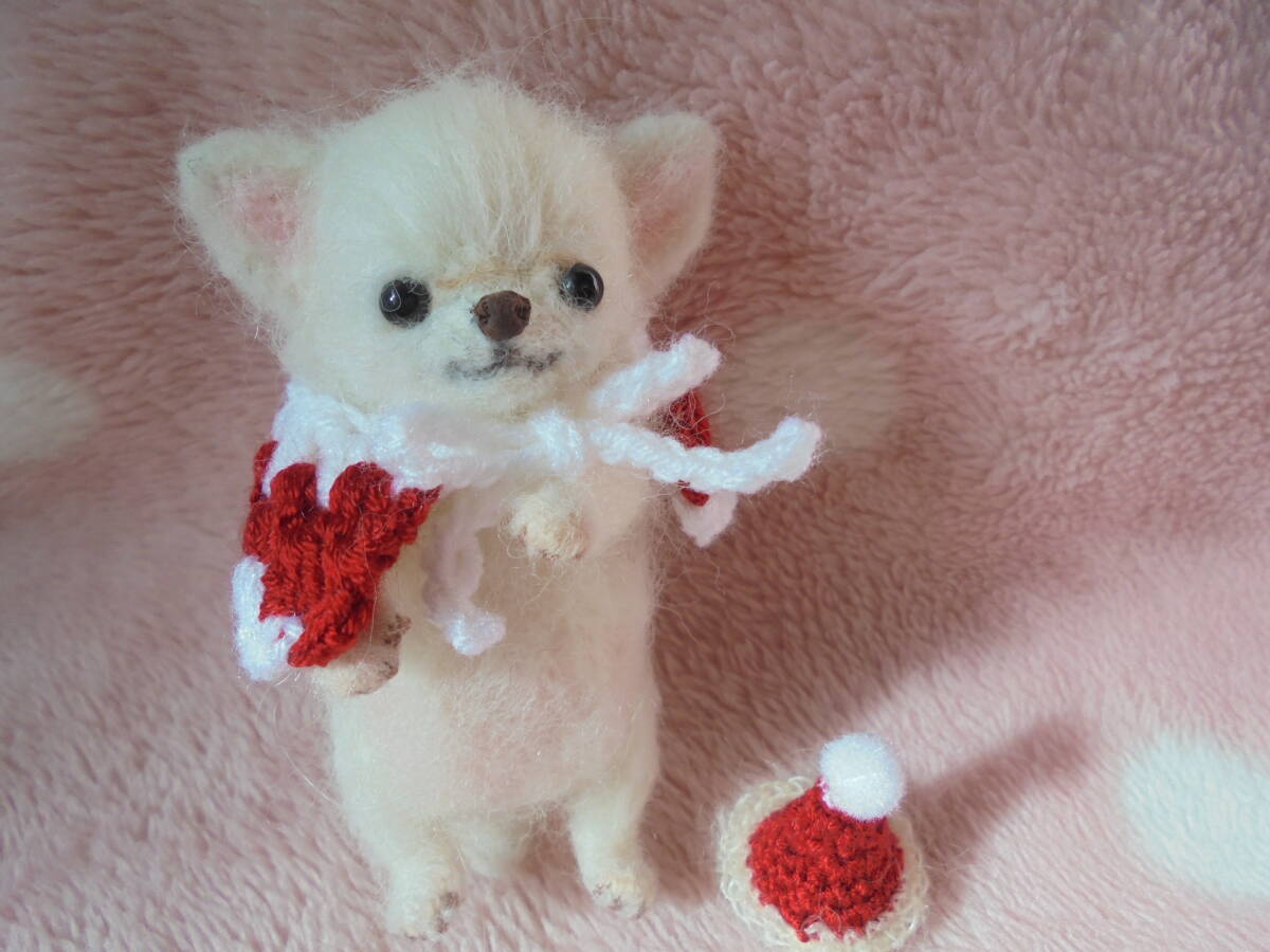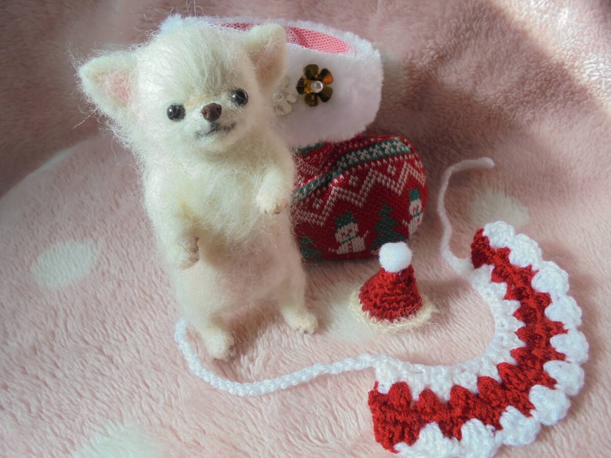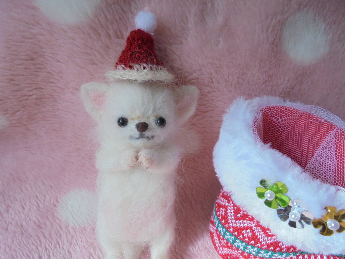 ☆ハンドメイド羊毛フェルト☆ チワワホワイト赤ちゃん♪ クリスマス♪ 身長約10.5センチ♪