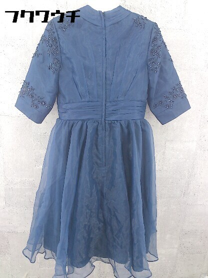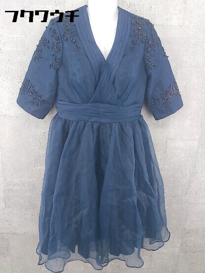 ◇ light in the box 装飾 刺繍 チュール パーティ 七分袖 ロング ドレス ワンピース ネイビー レディース