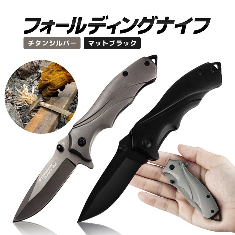 ◆アウトドア用折り畳みナイフ フォールディングナイフ キャンプ 登山 釣り 防災 バーベキュー サバイバル ステンレス 耐摩耗性 耐蝕性 携帯便利 2色選択可【チタングレー】MIKEB43