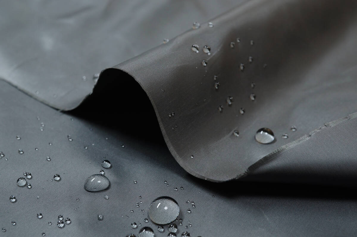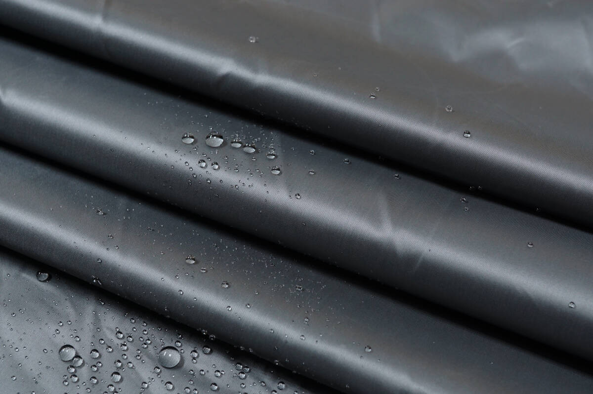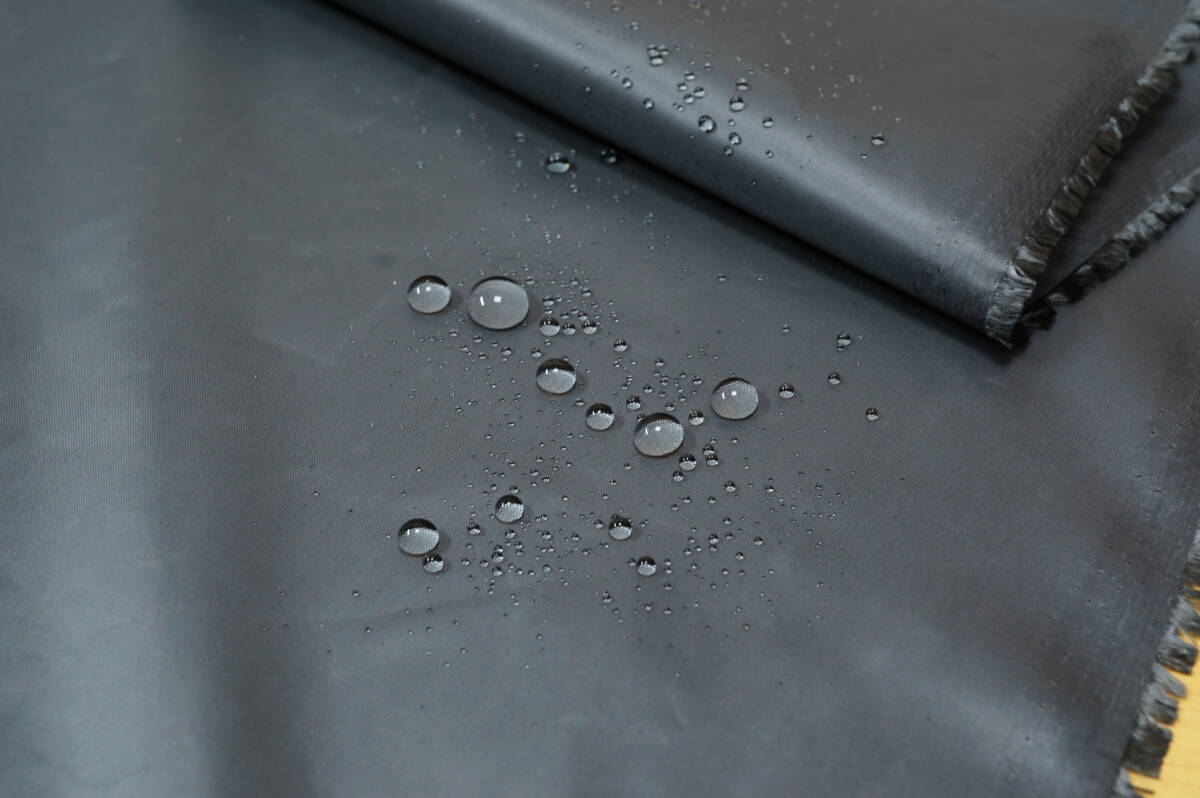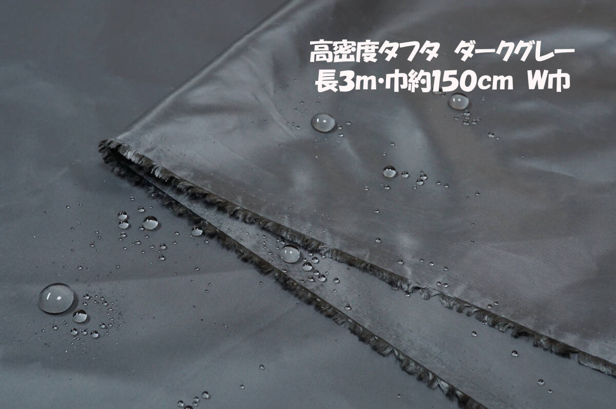 ポリエステル100%、薄地、ソフトな風合いで、撥水加工、色調:ダークグレーで長3m・巾約150cm W巾でございます。