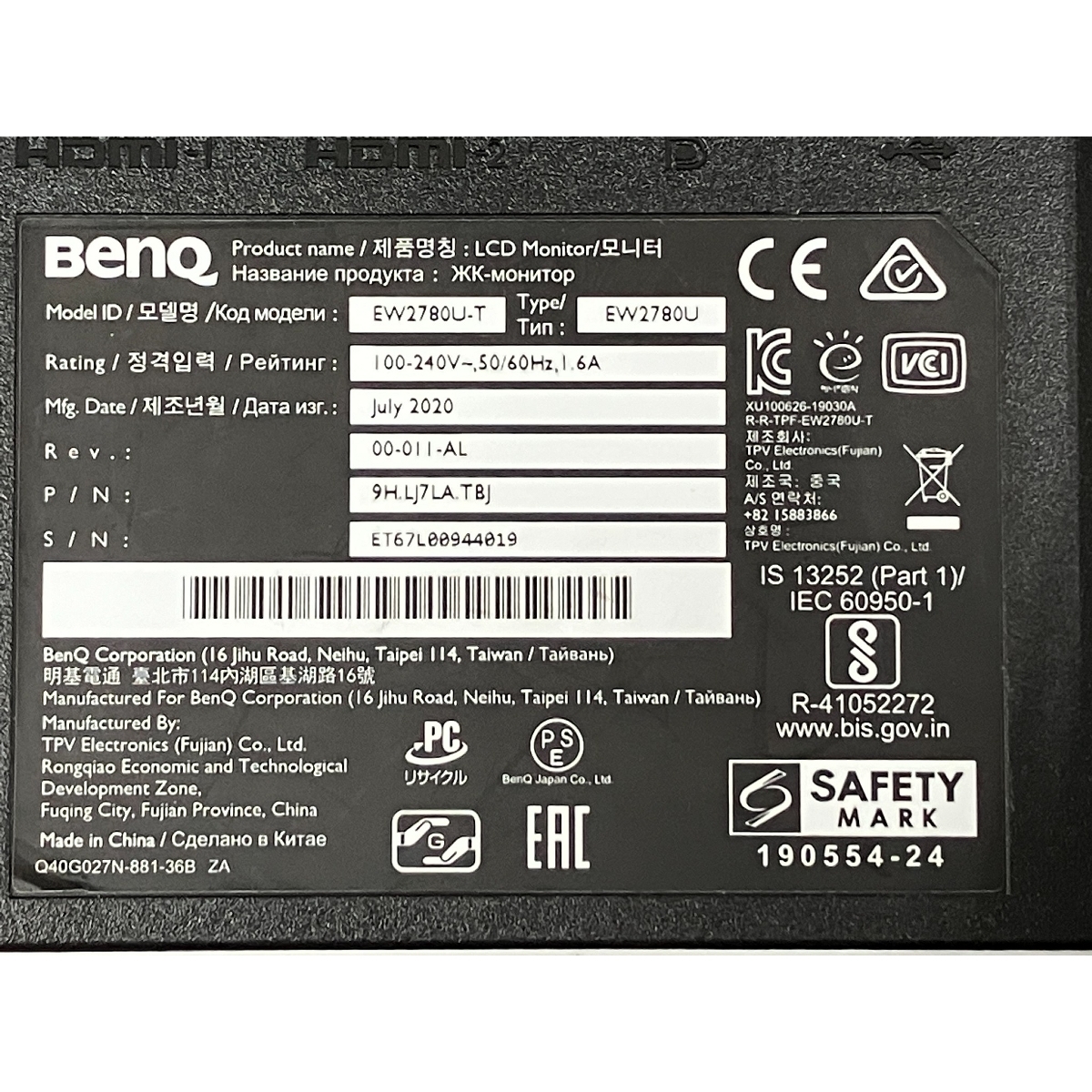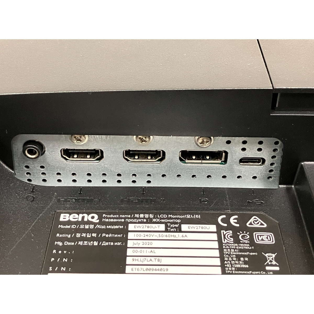 | メーカー名 | BENQ | 型番 | EW2780U |