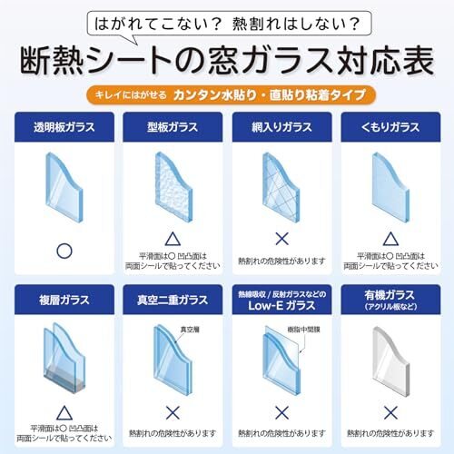 【断熱】窓ガラスに貼ることで窓ガラスの熱の伝わりを抑えます。3層シートの約3.5mmの空気層でグーンと暖房効果アップ!