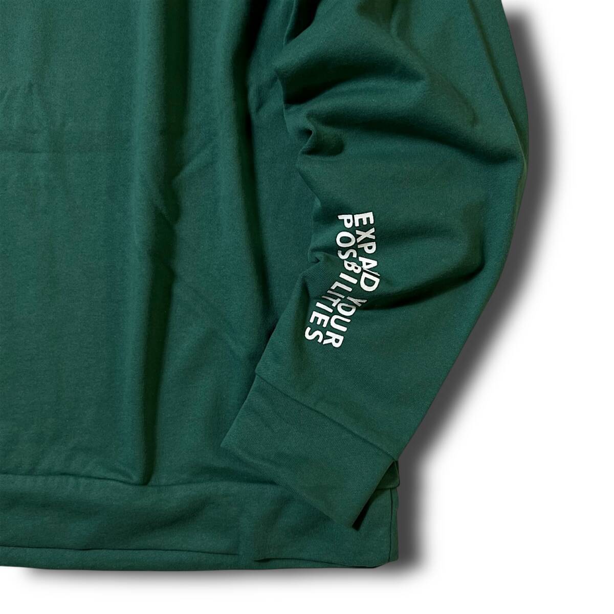 タイトル 新品 AddElm アドエルム 定1.6万 日本製 Made in japan 休養&睡眠の質向上 袖プリント リラックスウェア 長袖 スウェット トレーナー プルオーバー リカバリーウェア L メンズ ユニセックス GOLF スポーツ 部屋着 ルームウェア 普段使い タウンユース グリーン系