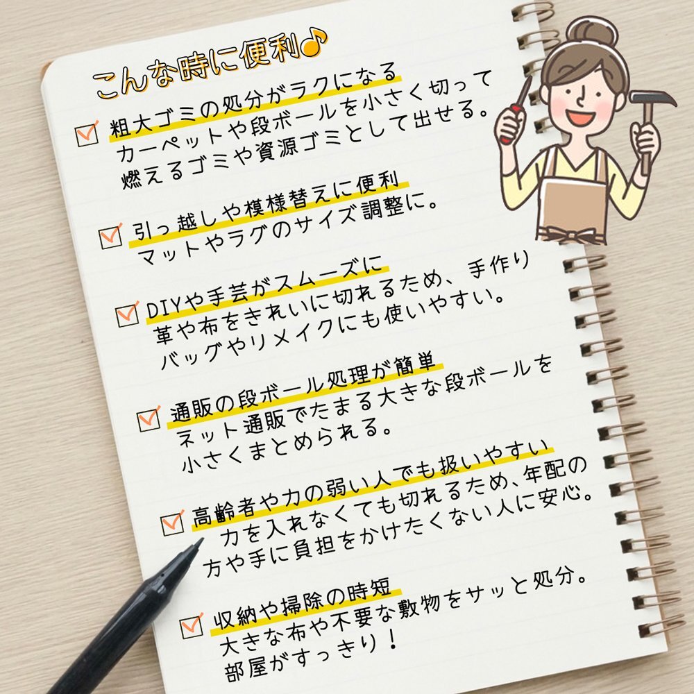 | 布や革を電動でラクラクカット! 充電式だからどこでも使える♪ |