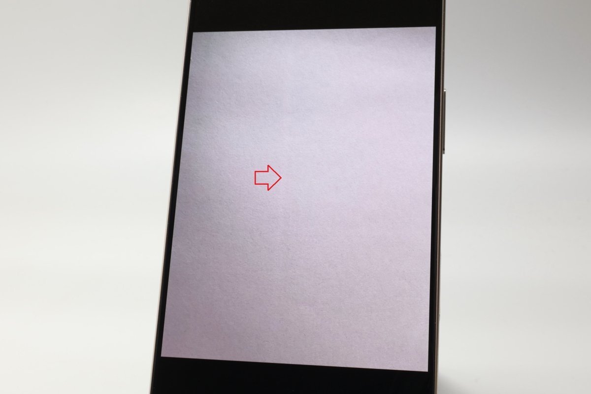 ・インカメラ撮影時、写真ともに縦(赤矢印)に光のラインが写り込みます(写真6 ※インカメラで撮影した写真を撮影してます)