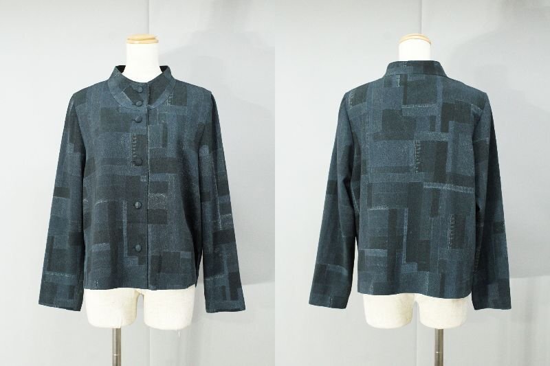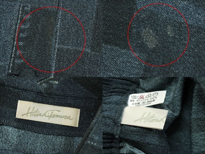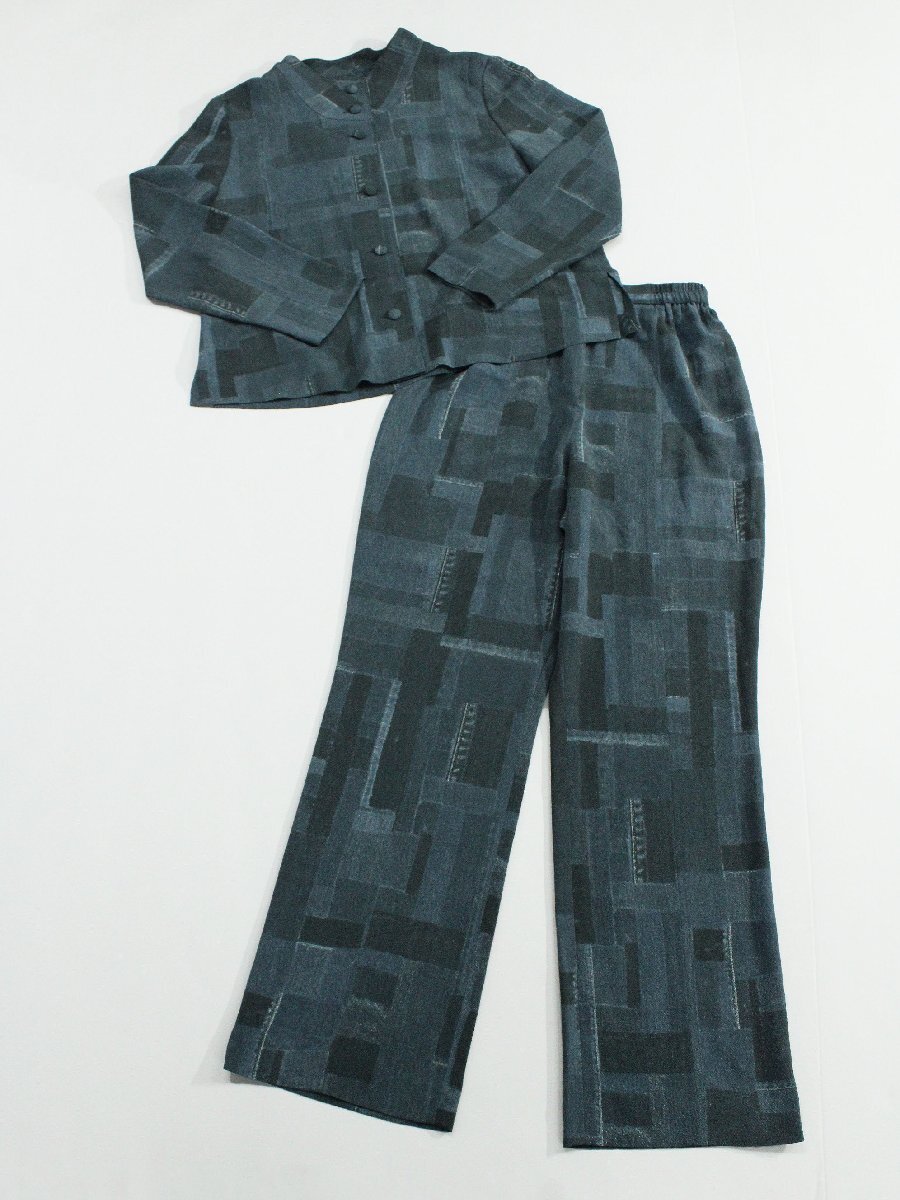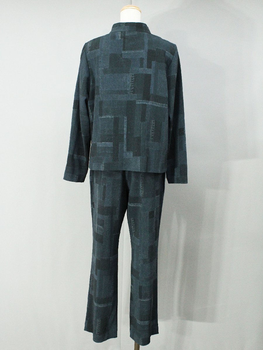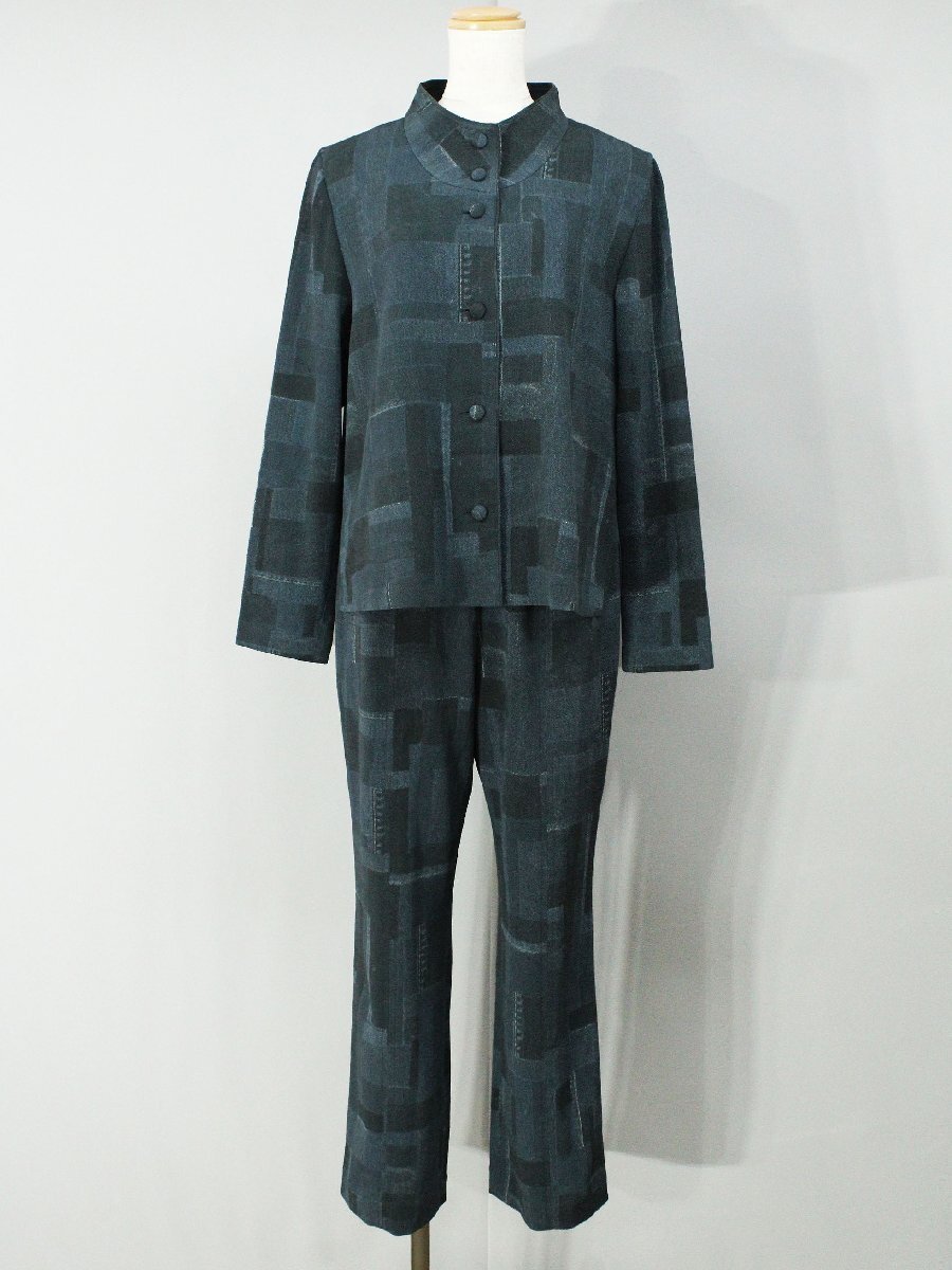 美品含む ヒトシタムラ/詩仙堂 洗えるちりめん織りセットアップ/ジャケット/パンツ 紺 rm312