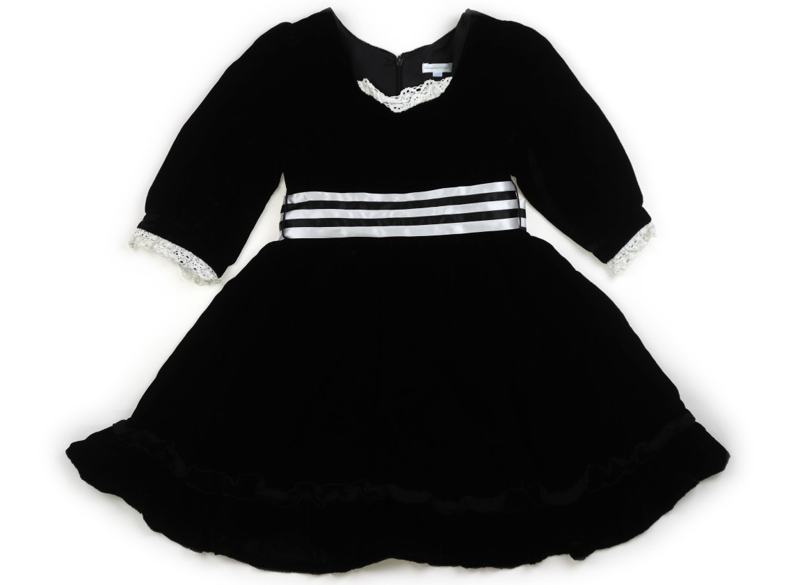 ベロア生地。ポリエステルの裏地がついています。後ろファスナー開き。リボンベルトは取り外し可能。全体にややシワ感があります。右袖口のボタンが欠損していますが、スペアがあります。