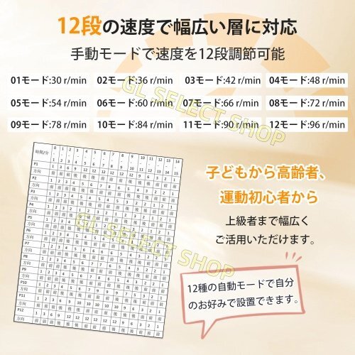 • 【12段の速度で幅広い層に対応】手動モードで速度を12段調節可能。子どもから高齢者、運動初心者から上級者まで幅広くご活用いただけます。12種の自動モードで自分のお好みで設置できます。ご年配の方でも安心! 膝を痛めずに足の筋肉を鍛えられる、理想的な運動補助器具です。座ってトレーニングすれば転倒の心配がなし。