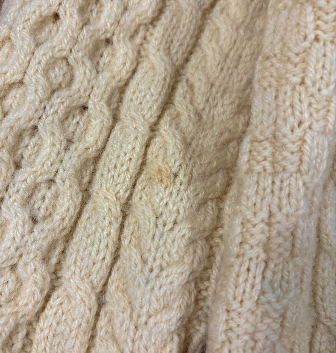 ケーブル×ハニカムの凝った編み地です。生地も分厚く春秋はもちろん、真冬でも活躍します。