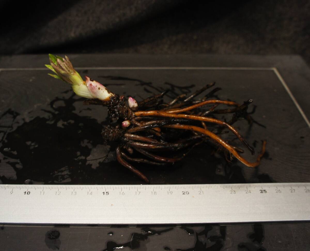 | ●商品説明● | 原種クリスマスローズ、入手困難な自生地からの採取株 「Antoine Hoog氏」由来の株、 ヘレボルス・トルクアタス AH. 9115です。 (Helleborus torquatus AH. 9115) MontenegroのMojkovacのそばの標高950m付近の 北向きの斜面にあるブナ林内でAntoine Hoog氏によって 採種された株の株分け品です。 採取地はモンテネグロですが、セルビアとの境界付近の コロニーにため、セルビアとモンテネグロの 分類は難しいようです。 トルクアァタスは分類学上、非常に厄介なようで 現地調査のたびにクロアチア、ボスニア、モンテネグロ、セルビアの どの種にも属さないあらたなコロニーが発見されております。 近年の分類ではトルクァタスという名前は、 いずれ改正されるのでは、という見方のようです。 出品した株は採取者、採取地、 コレクターズナンバーもしっかりしている株ですので、 いずれ改正されても名前が不明にならないと思います。 写真1枚目は同じナンバーの花の参考写真。 写真2枚目以降が出品した現品です。 蕾が見えてきています 撮影は12/4日 成長による変化等はご了承下さい。 |