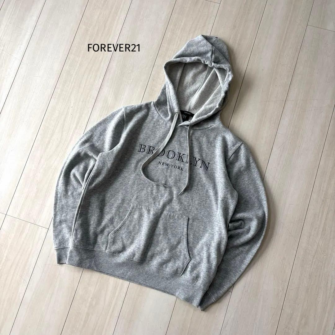 FOREVER21 BROOKLYNロゴ 裏起毛パーカー グレー レディース 中高生◎