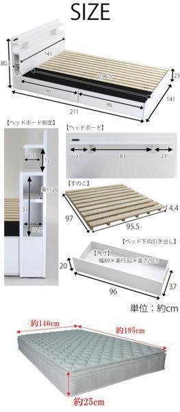 | 商品サイズ | 本体寸法(引き出し付きシステムベッド) : 約(幅)141x約(奥行)211x約(高さ)80.5(cm) 本体寸法(マットレス) : 約140(幅)x約195(奥行き)x約25(高さ)(cm) |