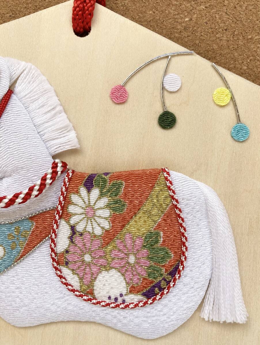 材料…シナベニア、ちりめん、キルト芯、厚紙、刺繍糸、挿し目、紐、水引、手芸用ボンド、両面テープ