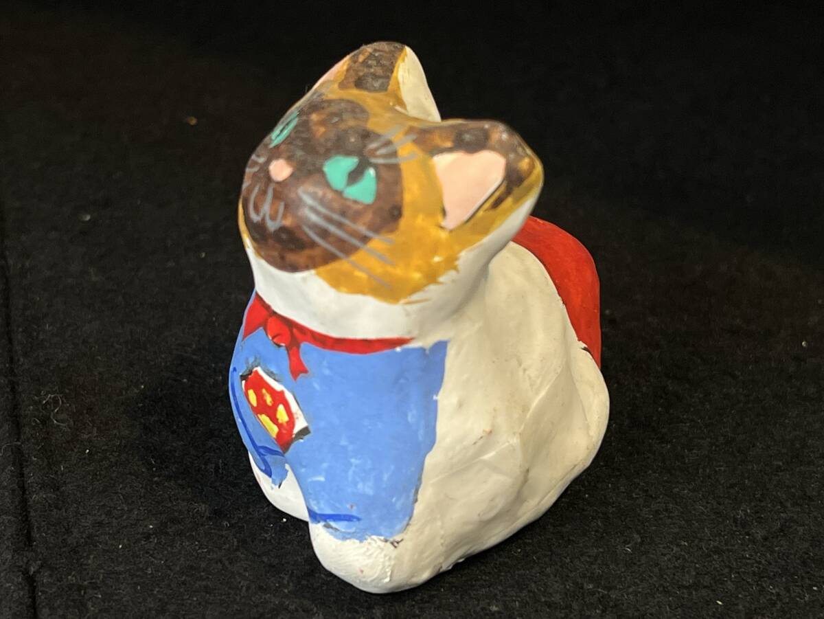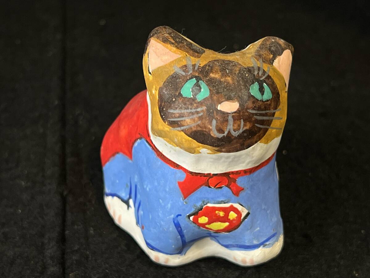 希少 神戸 須磨 張子 スーパーマン猫 吉岡武徳さん作 なんとも珍しいスーパーマンになった猫 他の産地ではみかけない唯一無二の雰囲気があります 希少な作品 経年品です。 写真でご確認下さい。 寸法 約6cm 約6cm 約4cm このほかにも須磨張子や各地の木鷽など味わい深い古い郷土玩具多数出品致しております。 こちらと一緒にいかがでしょうか。 宜しくお願い致します。 *必ず最後までお読み下さい。 *経年の傷み、汚れ、時代、真贋など全てのことは、全て画像により御判断下さい。 *出品物は古いものたちですのでどうしても傷みや汚れがあります。 それらを御理解頂いた上で御入札下さい。 *ノークレーム、ノーリターンでお願いします。 | ||||