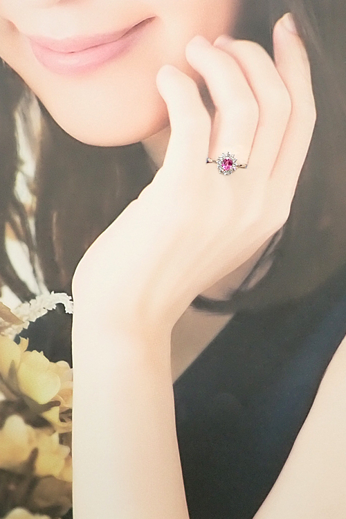 コメント色鮮やかな濃いピンクのサファイアに思わず見惚れてしまう、華やかな雰囲気のリングです。取り巻きのダイヤモンドがキラキラと煌めき、お手元にラグジュアリーな印象をもたらします。