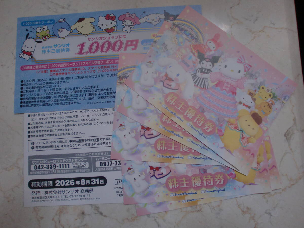 最新・サンリオピューロランド 株主優待券6枚+1000円優待券1枚セット  その2 送料無料 2026年8月31日まで