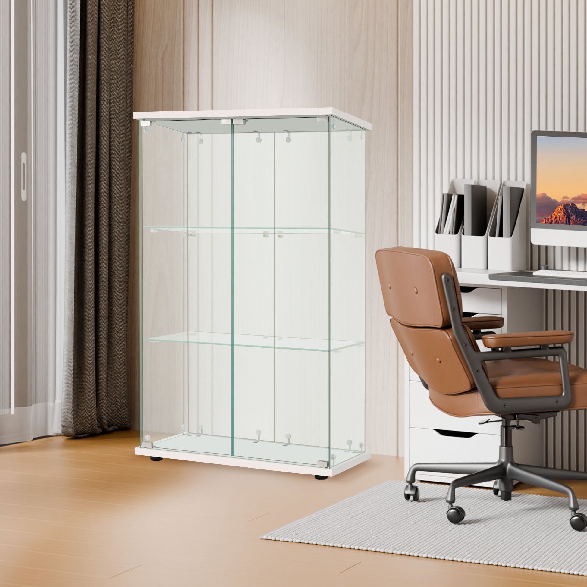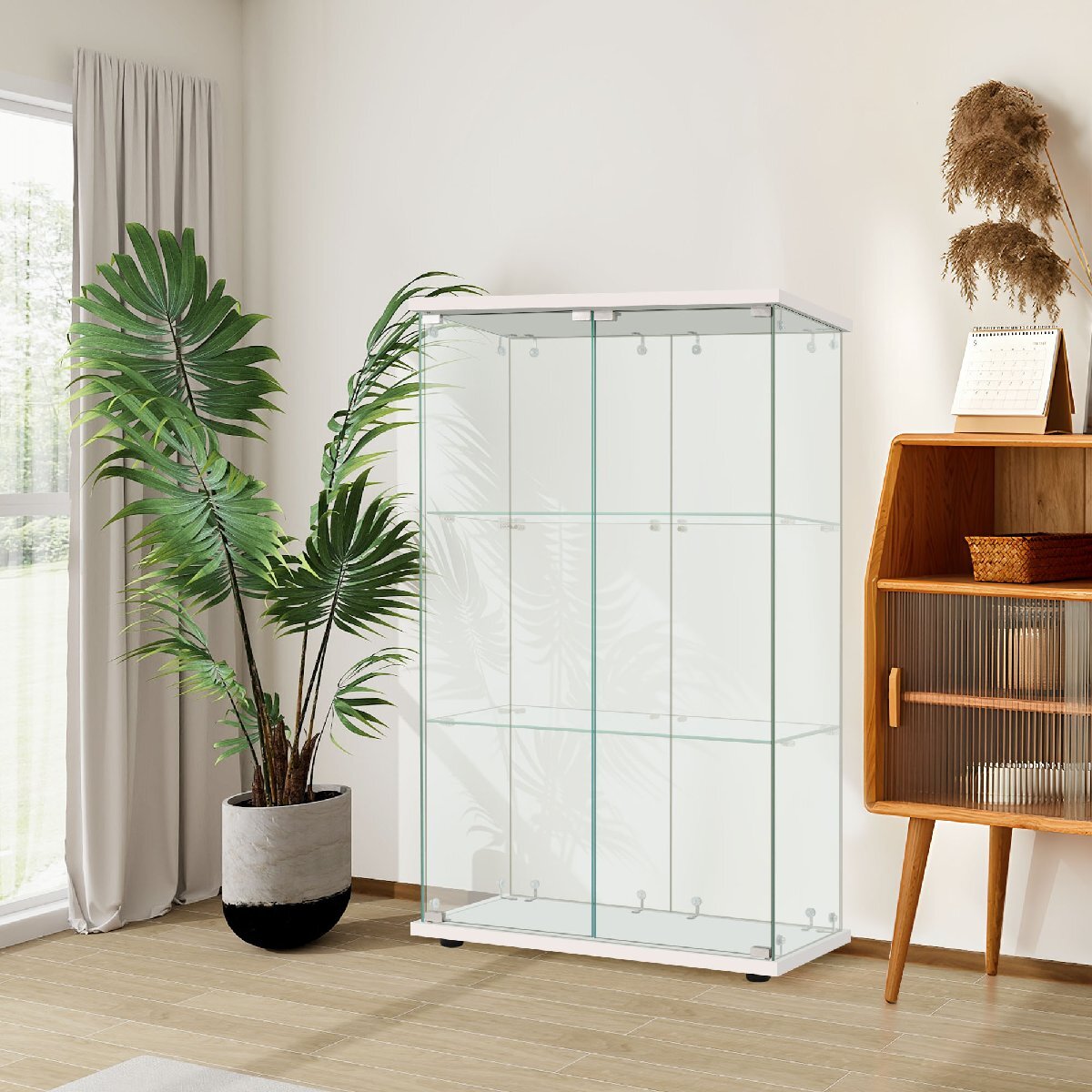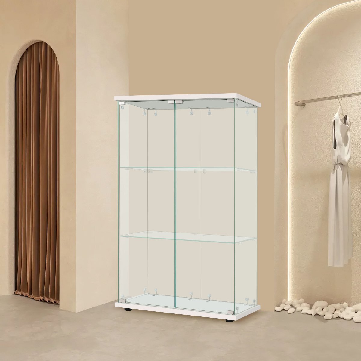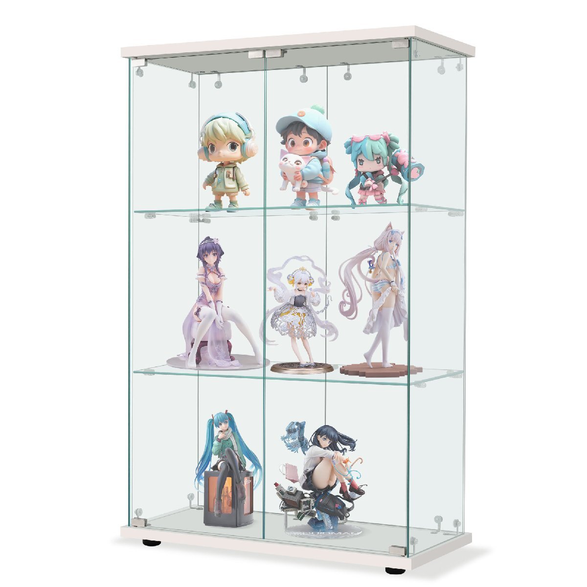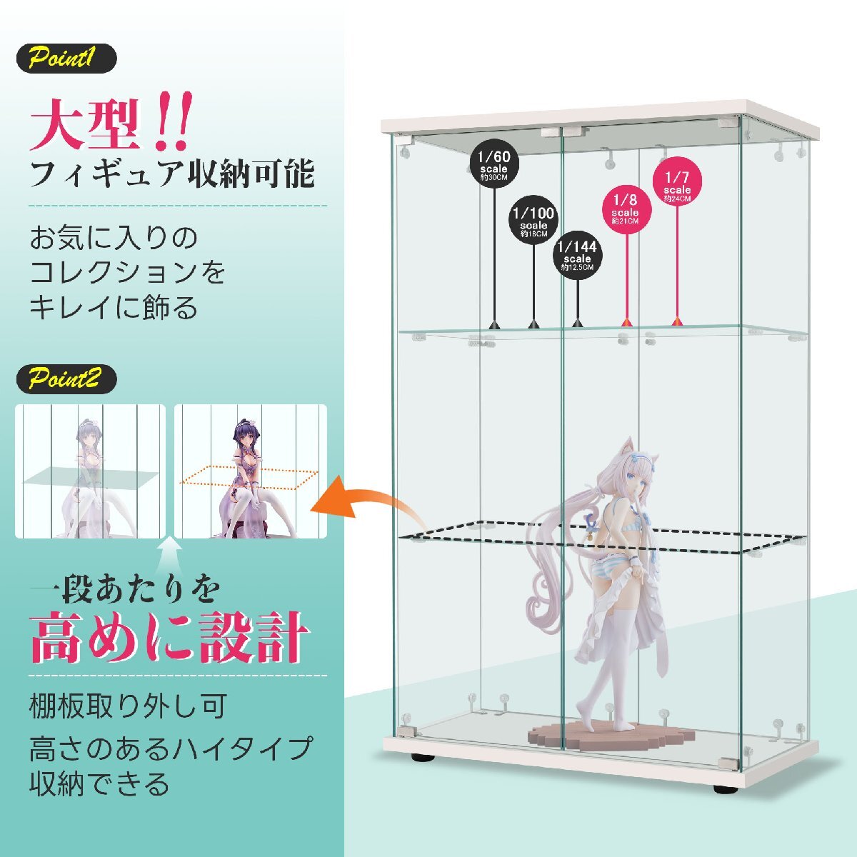 コレクションケース 両扉タイプ 大型 ワイドタイプ ガラスディスプレイキャビネット 3段 サイズ:幅80.5×奥行36.5×高さ125.5cm ホワイト