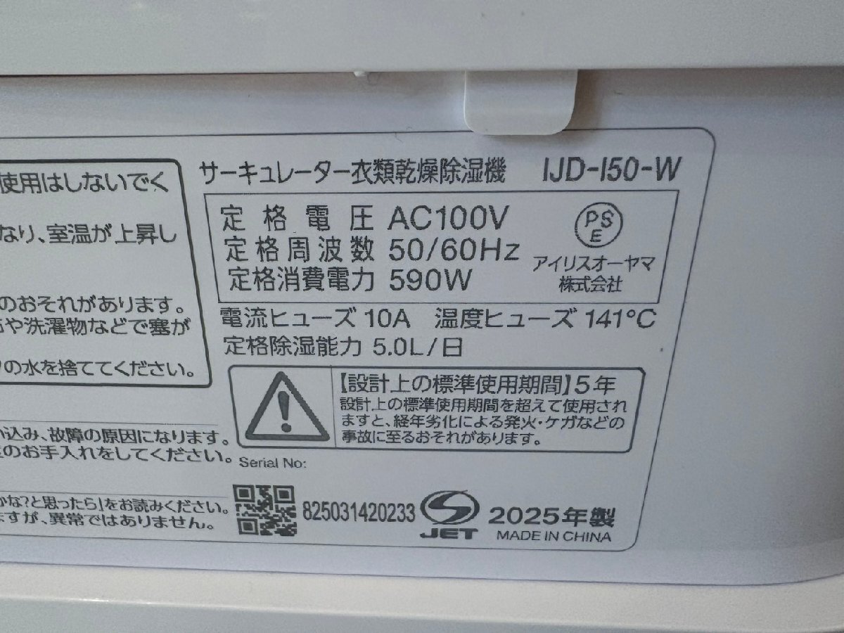 ◆IRISOHYAMA アイリスオーヤマ サーキュレーター衣類乾燥除湿器 2025年製 IJD-I50-W 家電 空調 中古◆19248★