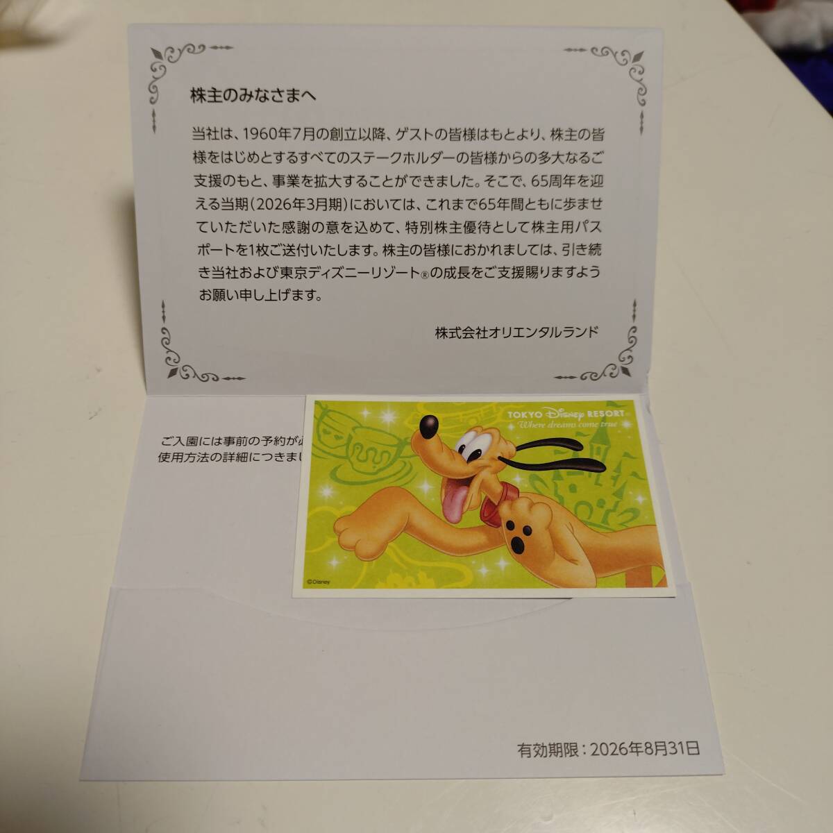 プルートのデザインが施された2026年8月31日まで有効なチケットです。