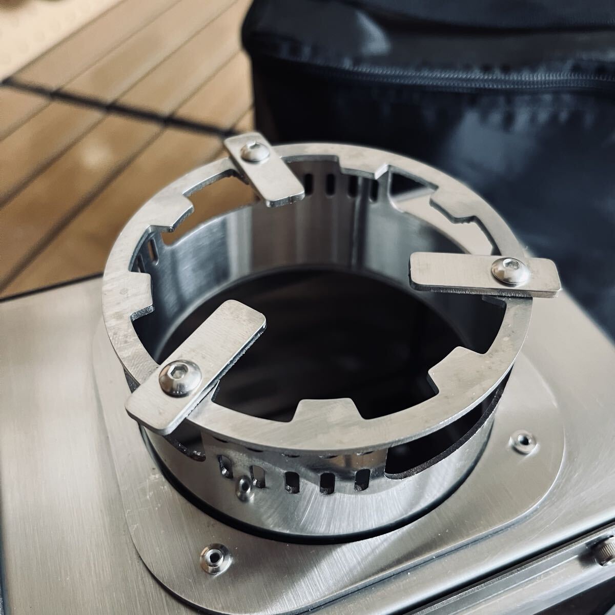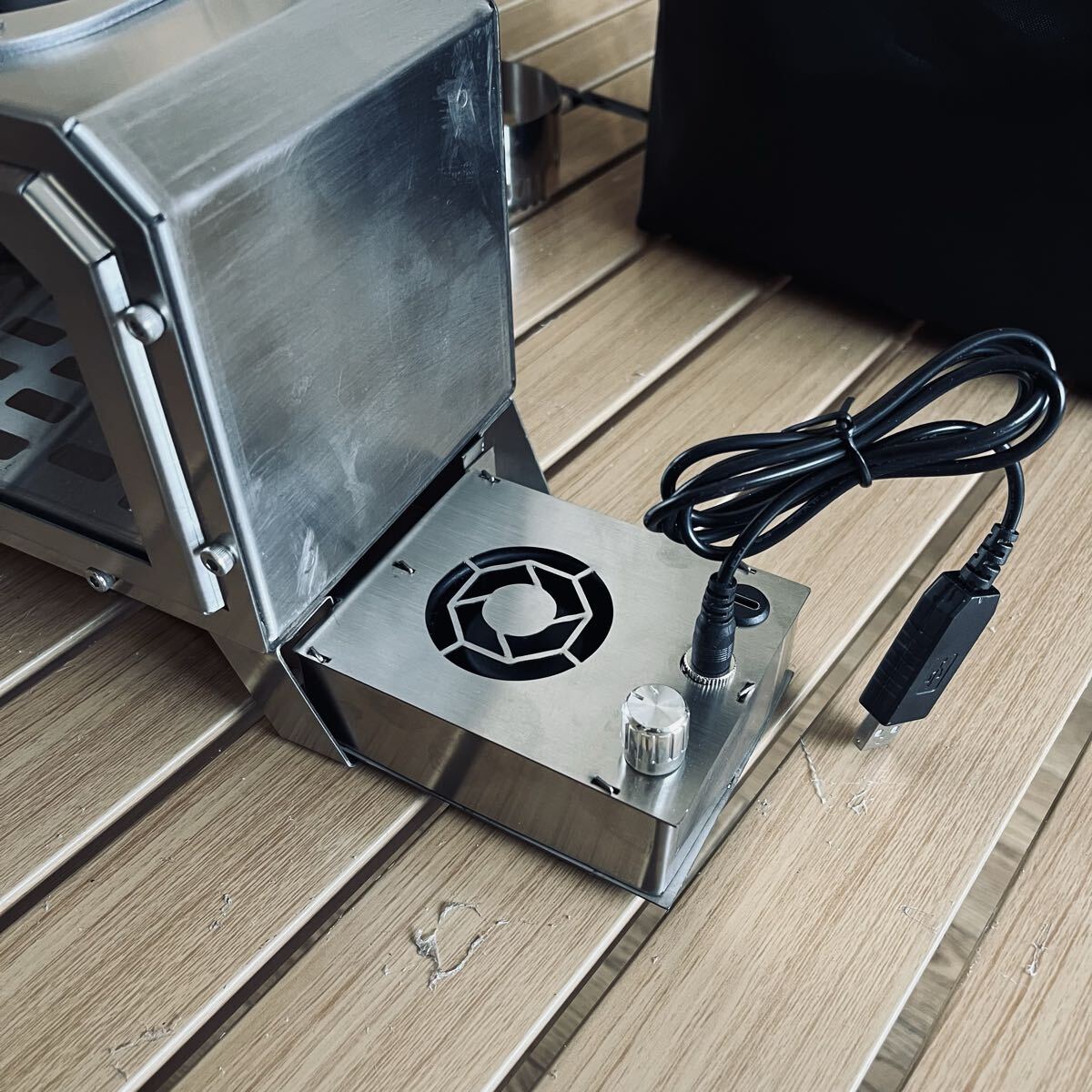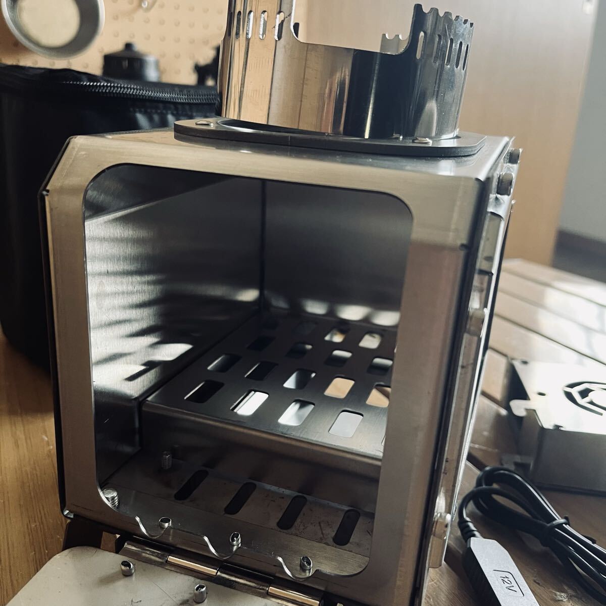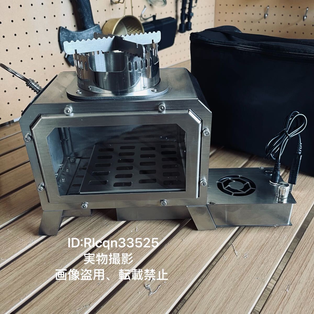 電動送風機搭載 ステンレス製 キャンプ 薪ストーブ 小型テーブル暖炉 ガラス窓 卓上焚火 収納付 USBとtype-c給電 21×21×13cm アウトドア