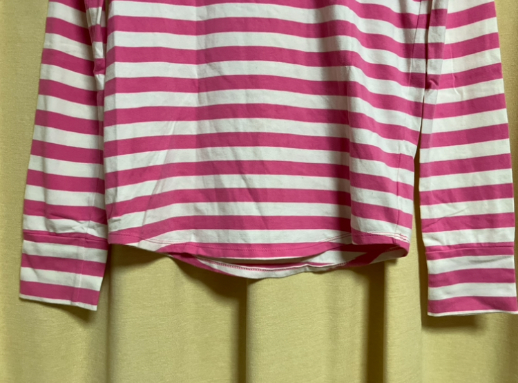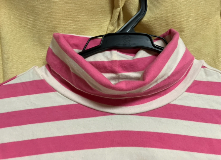 白×ピンクのボーダーがかわいいタートルネックのロングTシャツです。