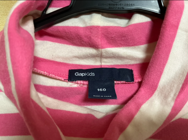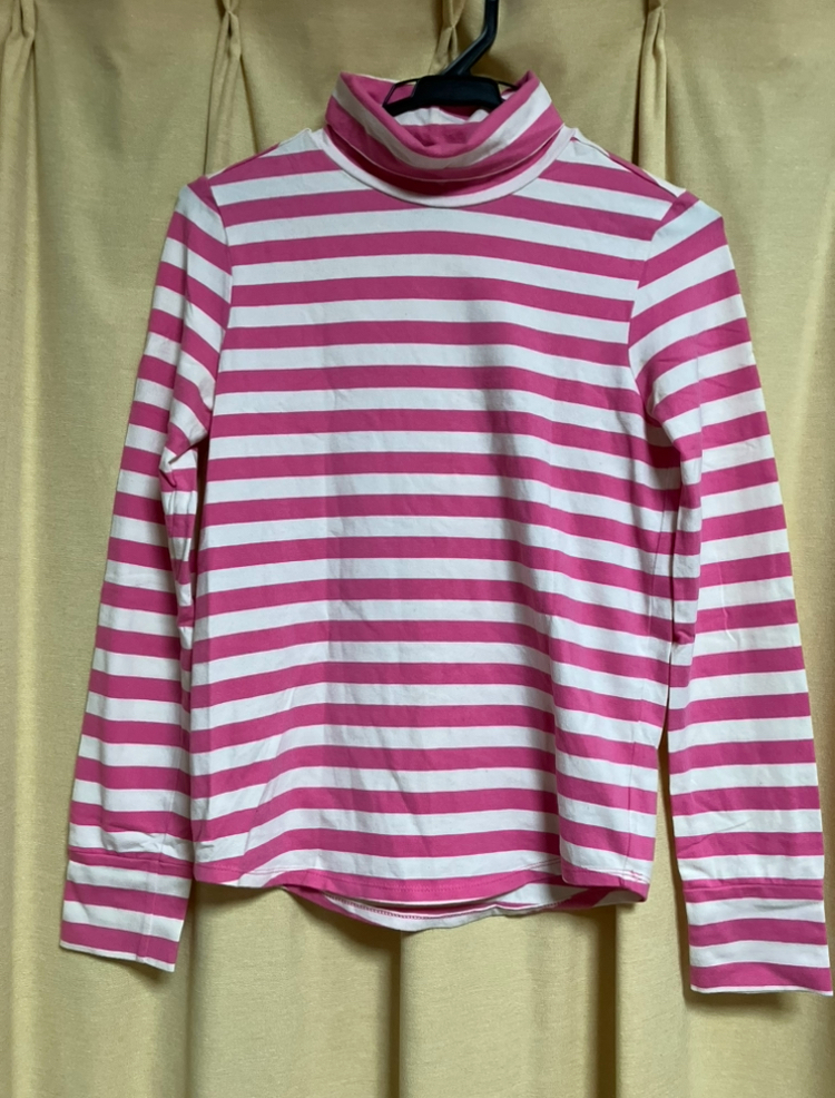 おなじみ大人気、GAP 白×ピンクボーダータートルネックロングTシャツ サイズ160㎝ です。