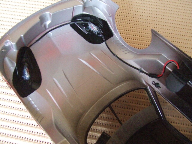 なおヘッドライトのライトケースはブラックで塗装し、穴をあけてLEDライトを装着しています。テールライトのライトケースにもLEDライトを装着し、点灯するようにしました。ボタン電池を使用(2個)、ライト専用の電池ケースを取り付けています(LEDライトや電池ケース等はタミヤ製ではありません)。配線・電池ケースはシューグーや両面テープで固定しています