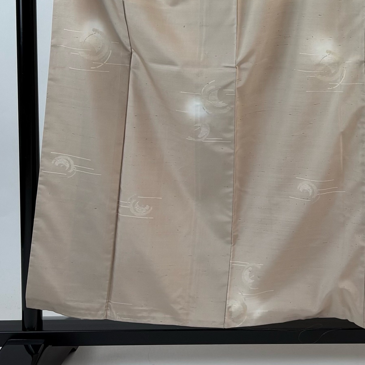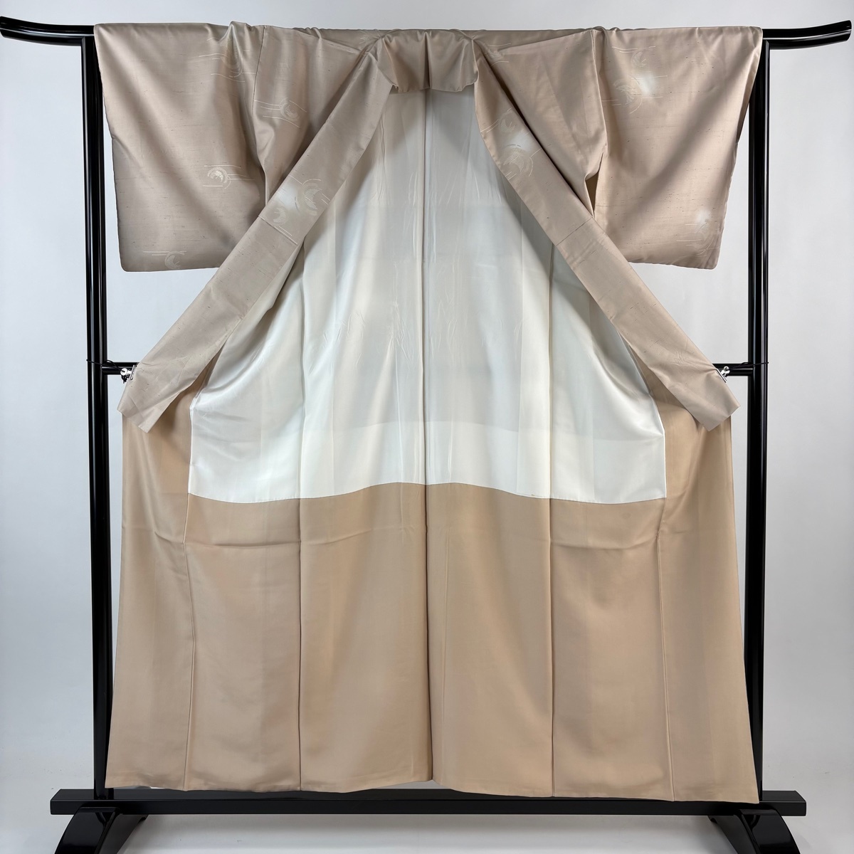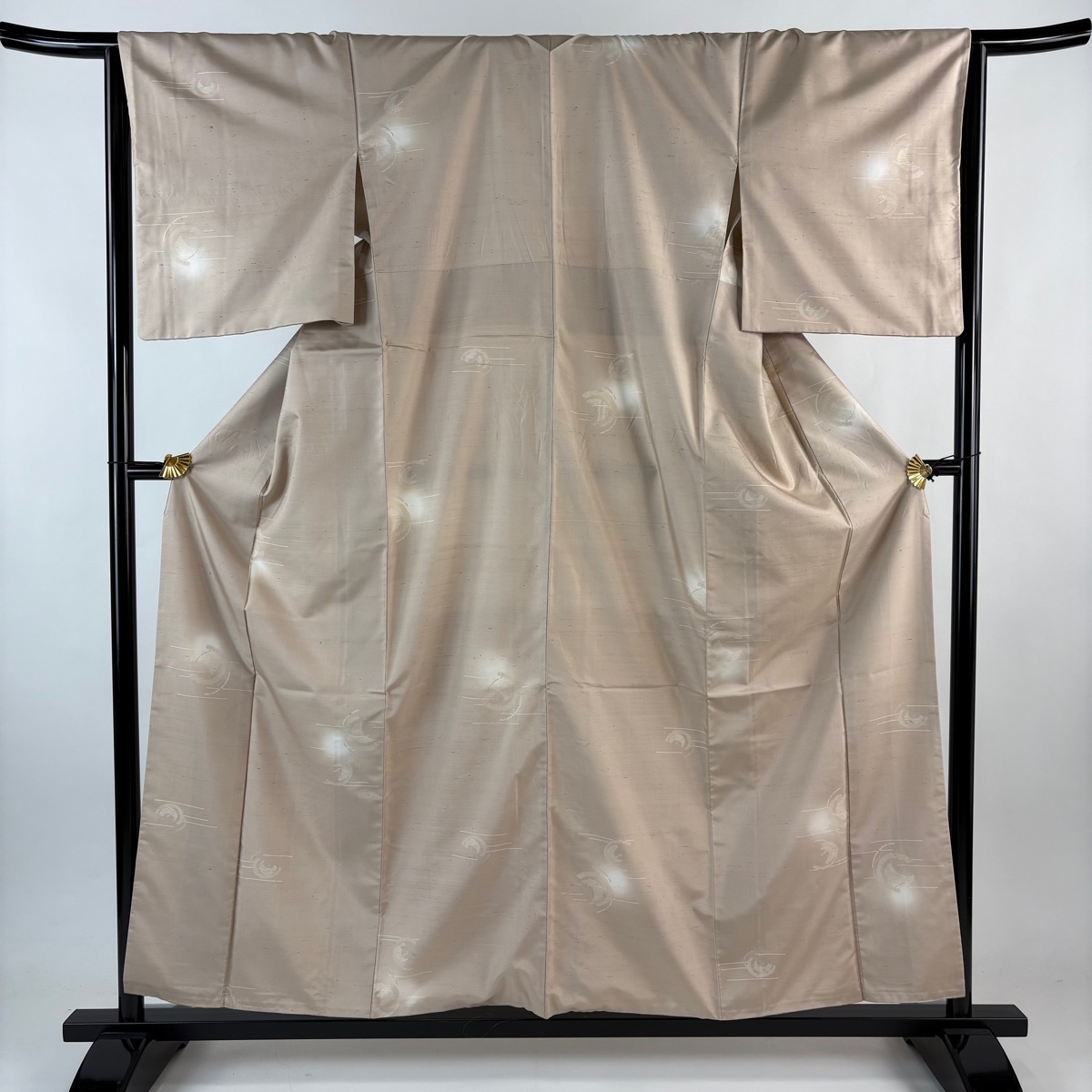 | 小紋 秀品 紬地 霞 幾何学模様 ぼかし ピンクベージュ 袷 身丈158.5 裄丈65 M 正絹 【中古】 |