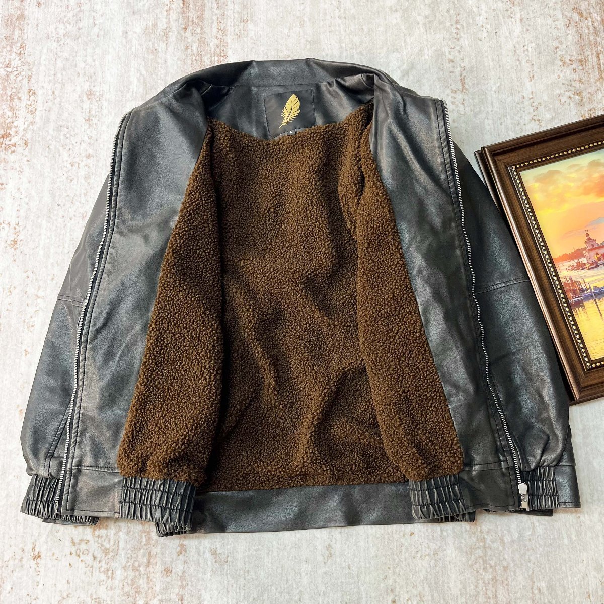 レザージャケット ロンドン製造 最高級牛革 本革 裏起毛 折り襟 カッコイイ ライダース 革ジャン コート アウター バイク用 秋冬 SIZE:M