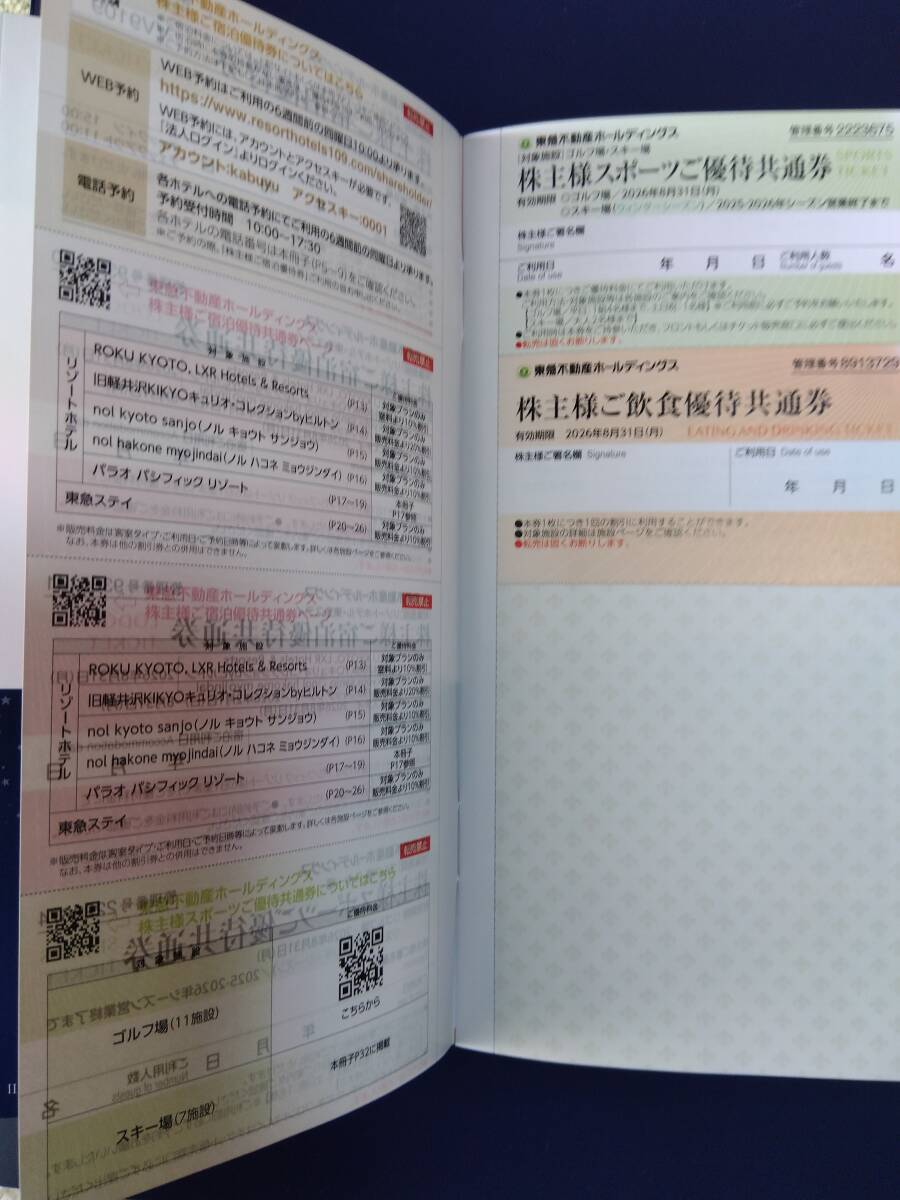 ★最新★東急不動産HD・株主様ご優待券100株分:有効期限2026年8月末迄