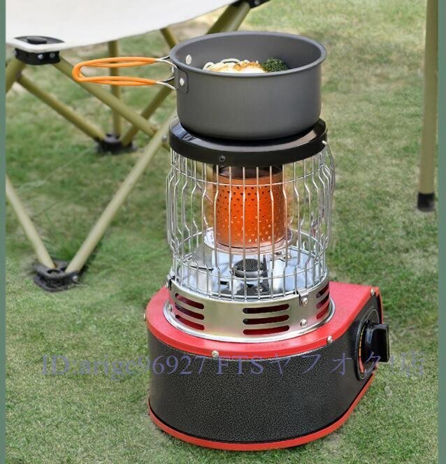 ★新品カセットガスストーブ ガスヒーター キャンプ デカ暖 1台3役 水を加熱 で料理、暖房 防寒対策 屋内屋外用 暖房機 釣り キャンプ用赤