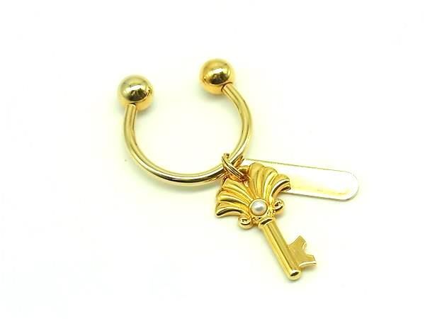 ■美品■ MIKIMOTO ミキモト 本真珠 アコヤ真珠 パール 約3mm キーリング レディース ゴールド系 DJ5273