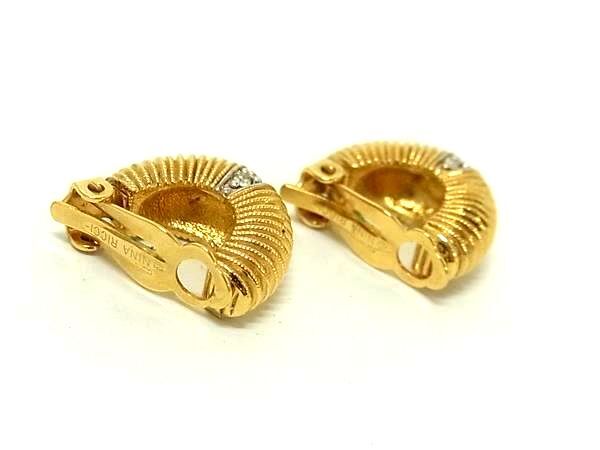 ■美品■ NINA RICCI ニナリッチ ラインストーン クリップ式 イヤリング アクセサリー レディース ゴールド系 DK6055